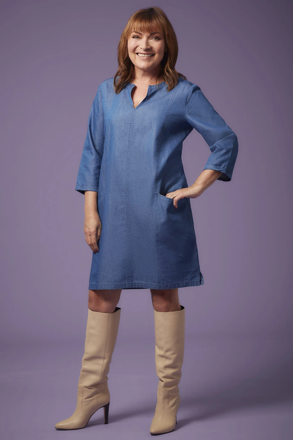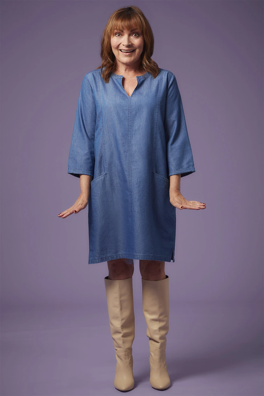 Add this collarless dress to your wardrobe this spring. The notch neck and 3/4 sleeves make it comfortable and breathable in the warmer months. It is knee-length and made of a soft material. And the dress is complete with functioning pockets on the front of the dress. Wear with knee high boots and a necklace for a smart casual look.