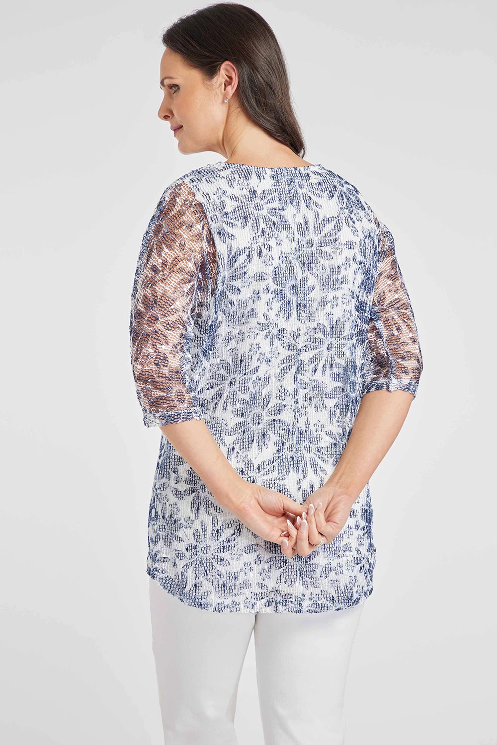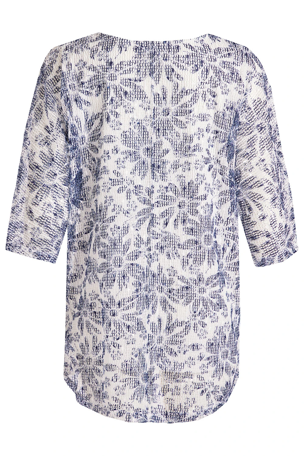 This beautiful daisy designed top is great for a lot of different occasions. The popcorn fabric and textured design make this top a must-have. Pair with black trousers and heeled boots for a more dressed-up look.