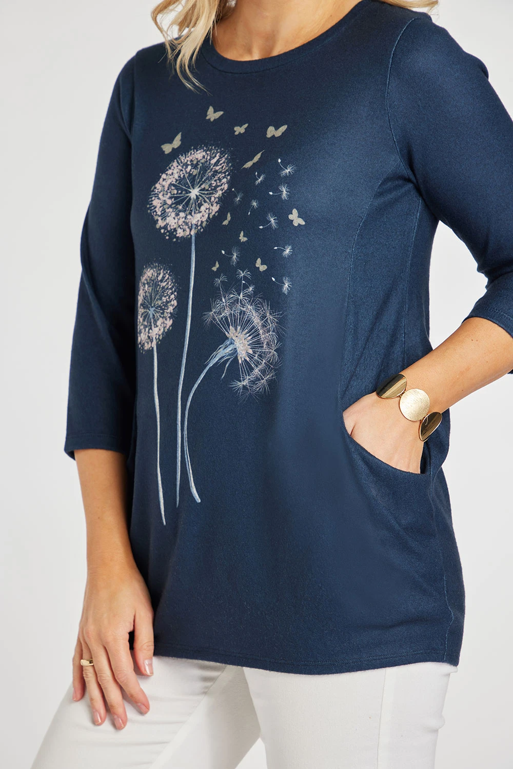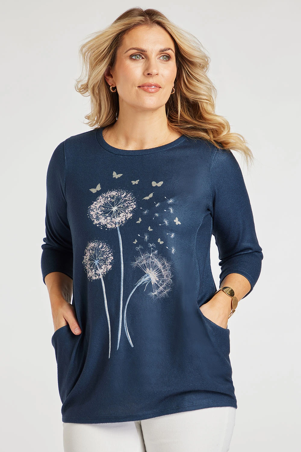 Add this dandelion print tunic to your collection this Spring. The 3/4 sleeves and round neck are great for keeping it comfortable and breathable when the seasons change. The colour scheme is perfect for pairing with other items you may already have in your wardrobe. Pair with leggings and knee-high boots for a casual weekend look.