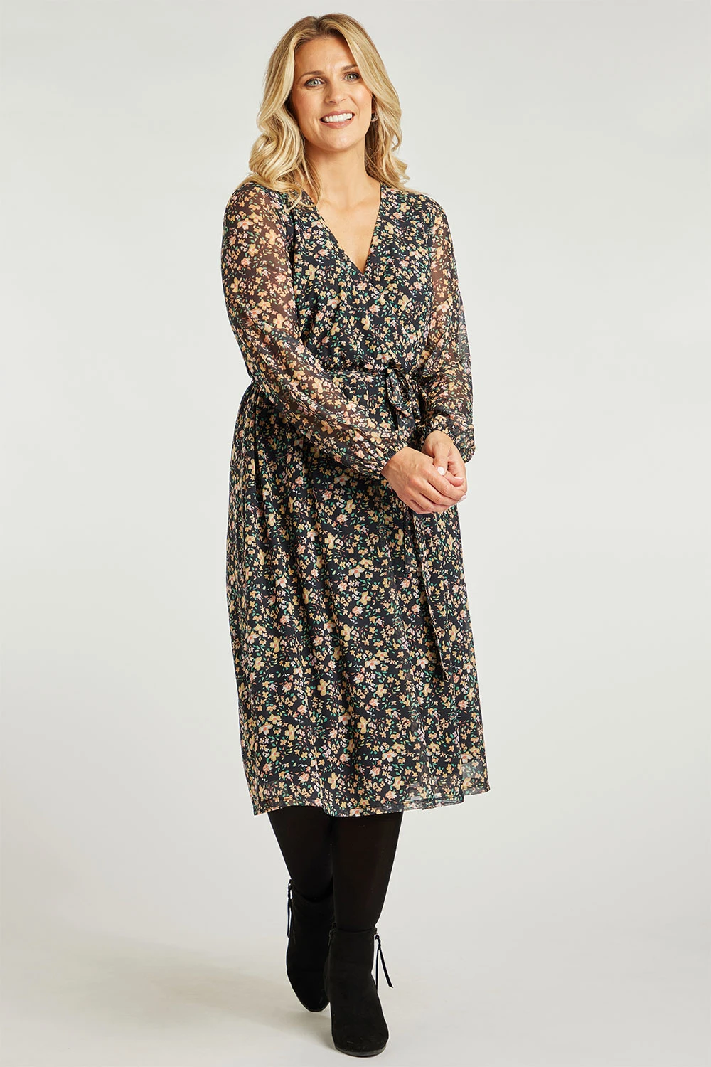 This beautiful ditsy print dress is an amazing addition to any wardrobe. The length is perfect for an evening out or office wear. The print adds feminity to the dress and has a classic V-Neck.