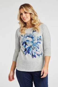 Add this floral print top to your collection this Spring. The 3/4 sleeves and round neck are great for keeping it comfortable and breathable when the seasons change. The colour scheme is perfect for pairing with other items you may already have in your wardrobe. Pair with jeans and ankle boots for a casual weekend look.