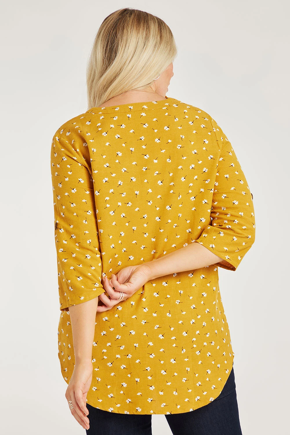 This longline ditsy print tunic is a perfect addition to your wardrobe ready for spring time. It is Included in Lorraine Kelly’s collection, Lorraine Loves. The woven material makes it breathable and soft to make you more comfortable as it gets warmer. There is wooden button detailing on the front and on the arms to hold the sleeves up. Pair with jeans and trainers for a casual spring look.