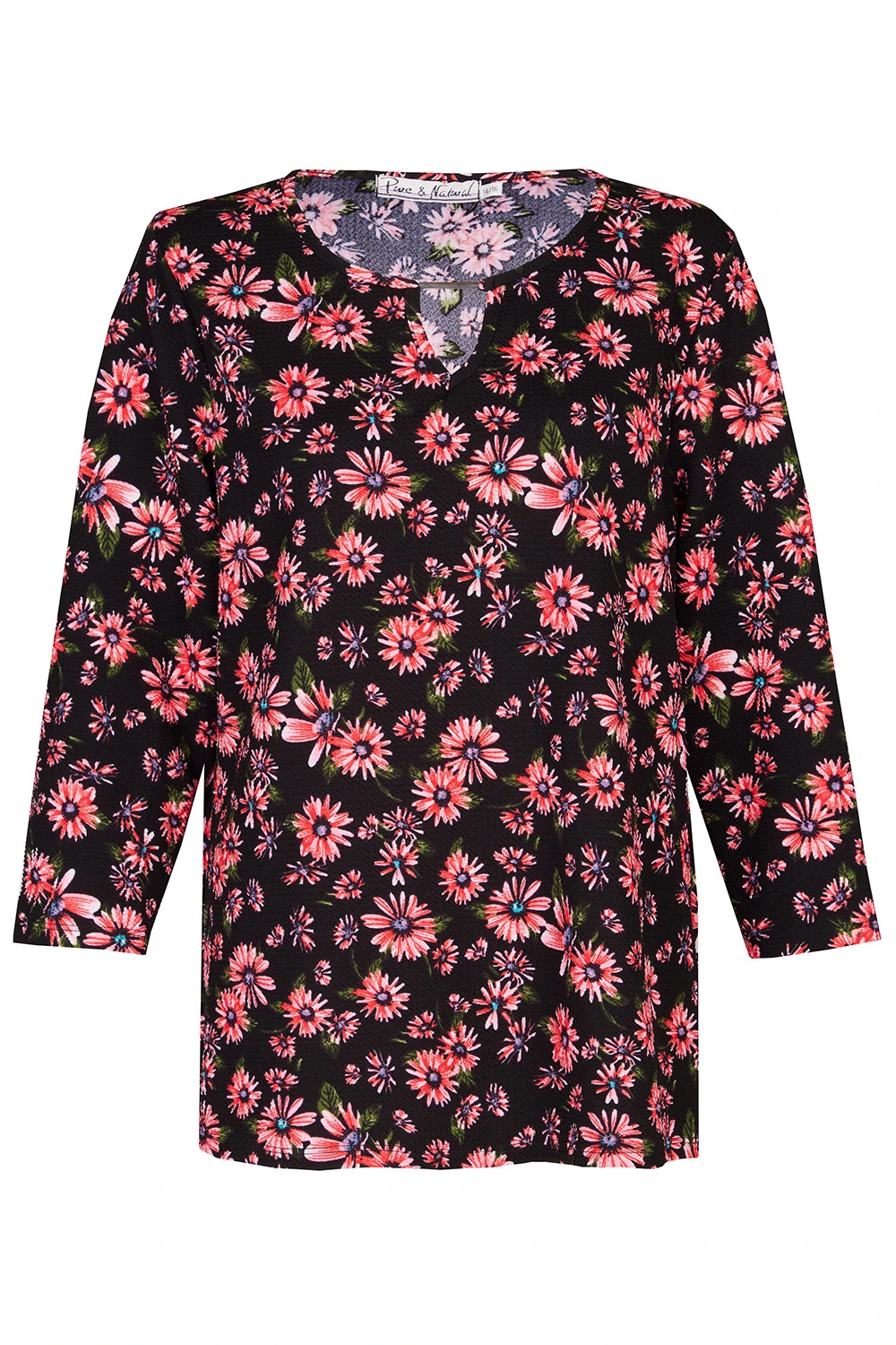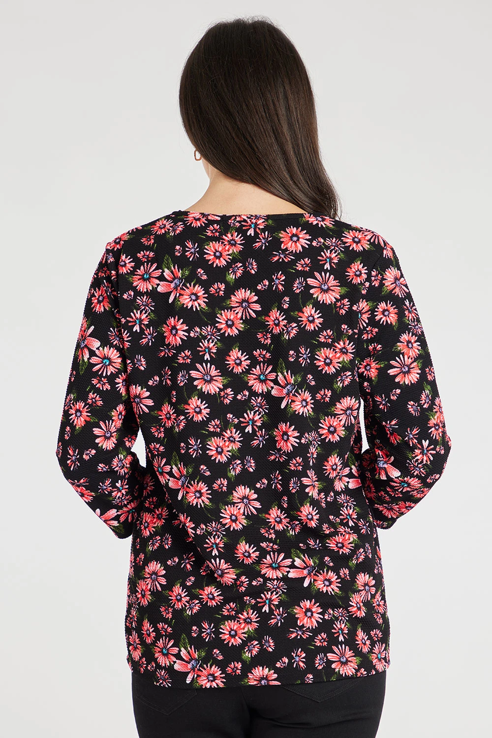 This beautifully designed floral top would make a great addition to your Spring wardrobe. The floral design and metal notch neck add a feminine touch and sophistication to your outfit. Pair with trousers and boots for a perfect office look.