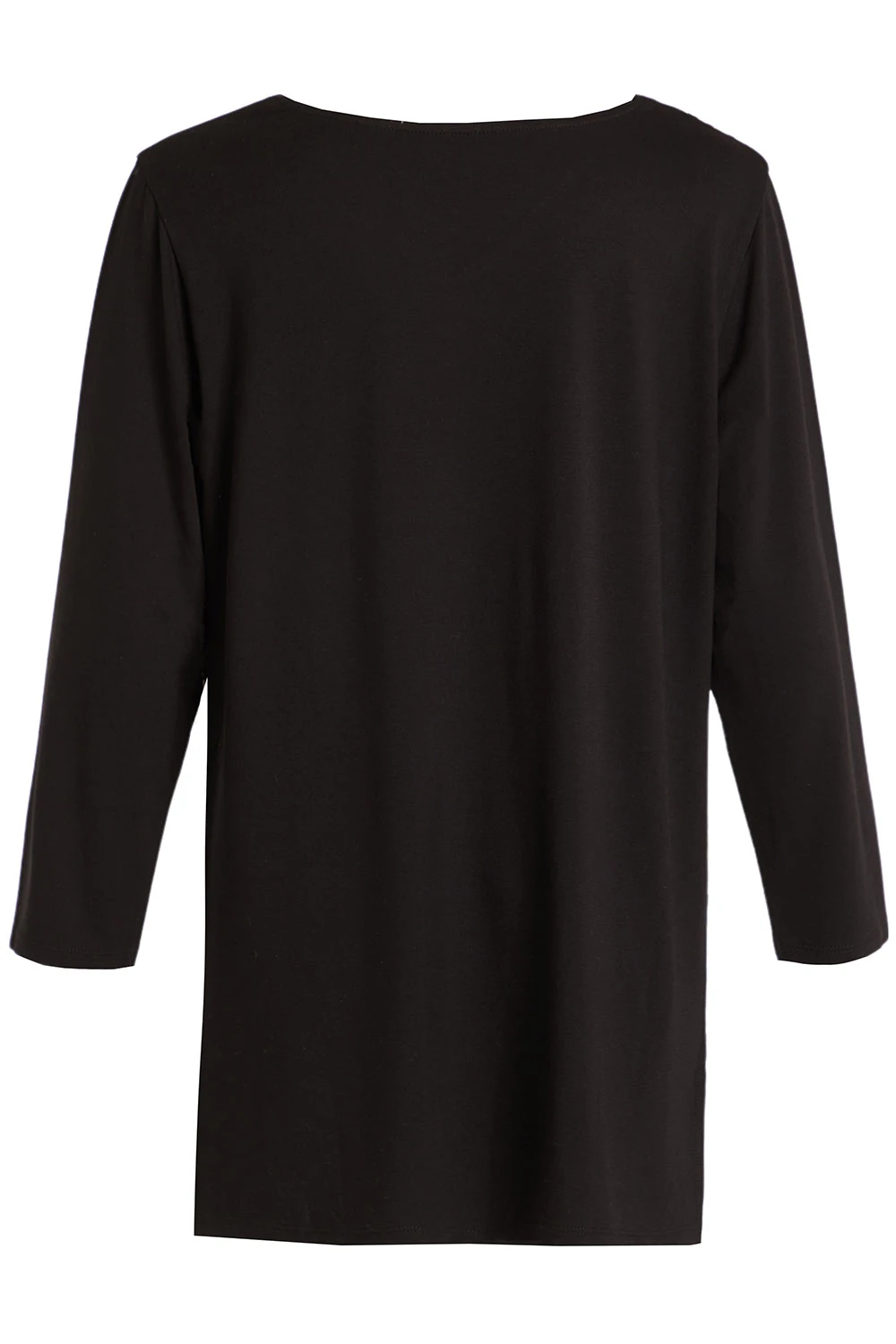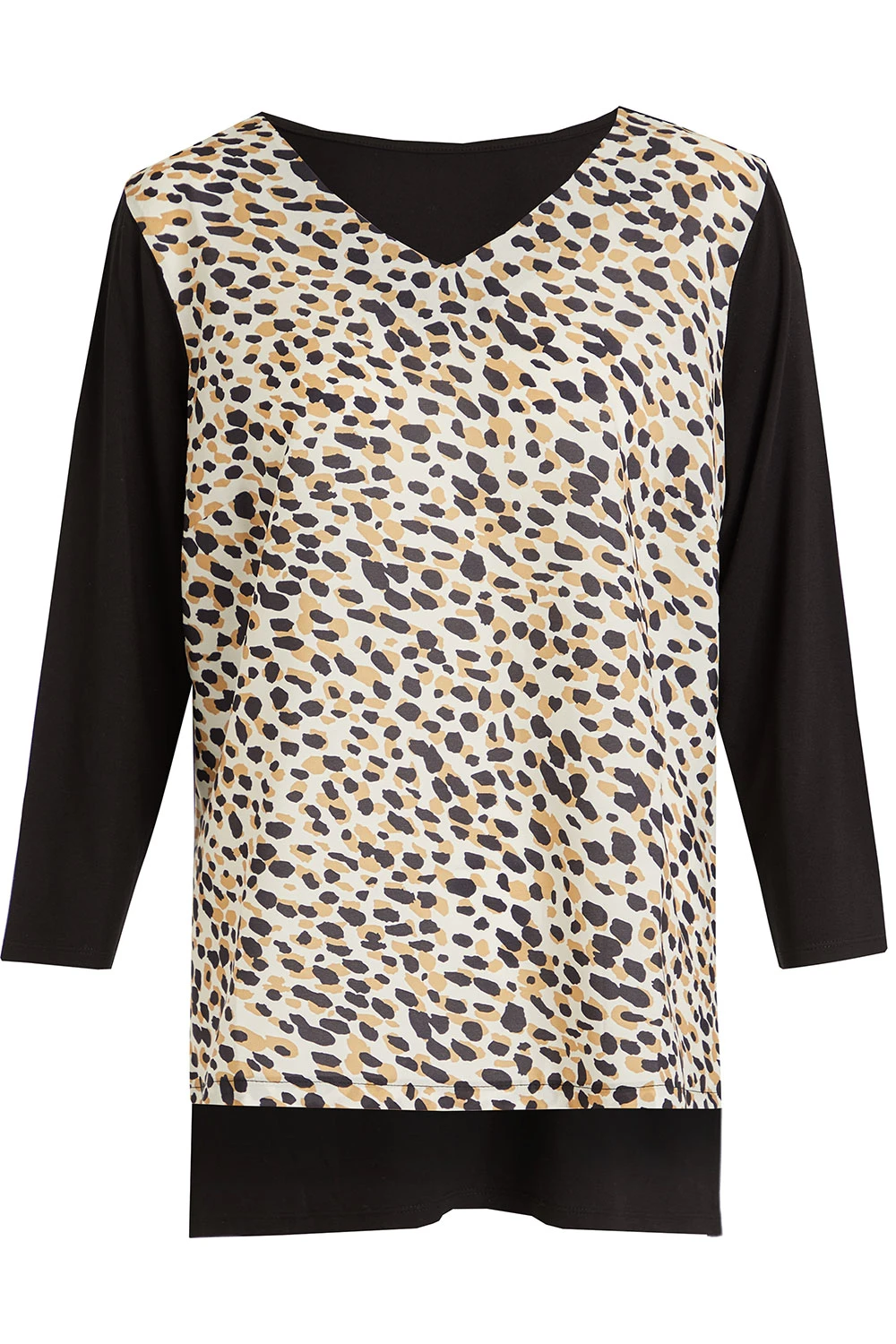This flattering woven front top is perfect for any occasion. It has a v-neckline, 3/4 sleeves, and a bold dash print design. Wear with your favourite jeans or trousers for a smart daytime look.