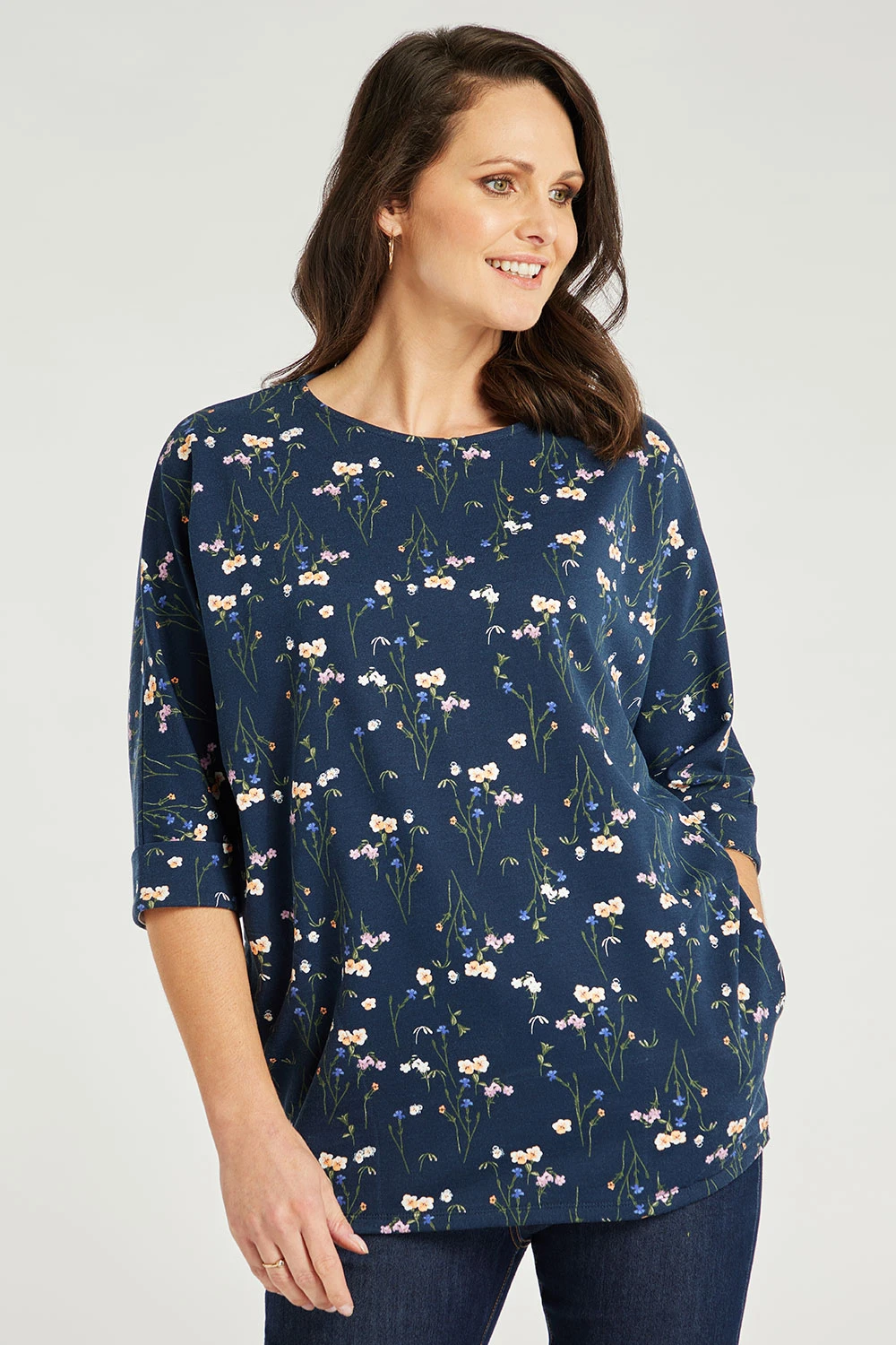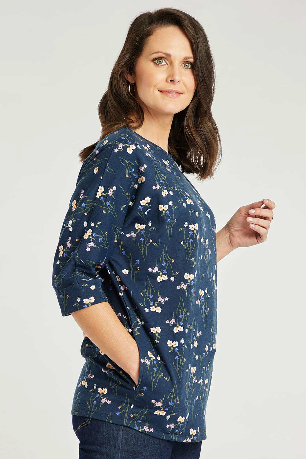This beautiful batwing floral tunic would make a great addition to any wardrobe. The pressed flower design adds a feminine touch and also has pockets built in. Pair with trousers and a heeled boot for a smart casual look.