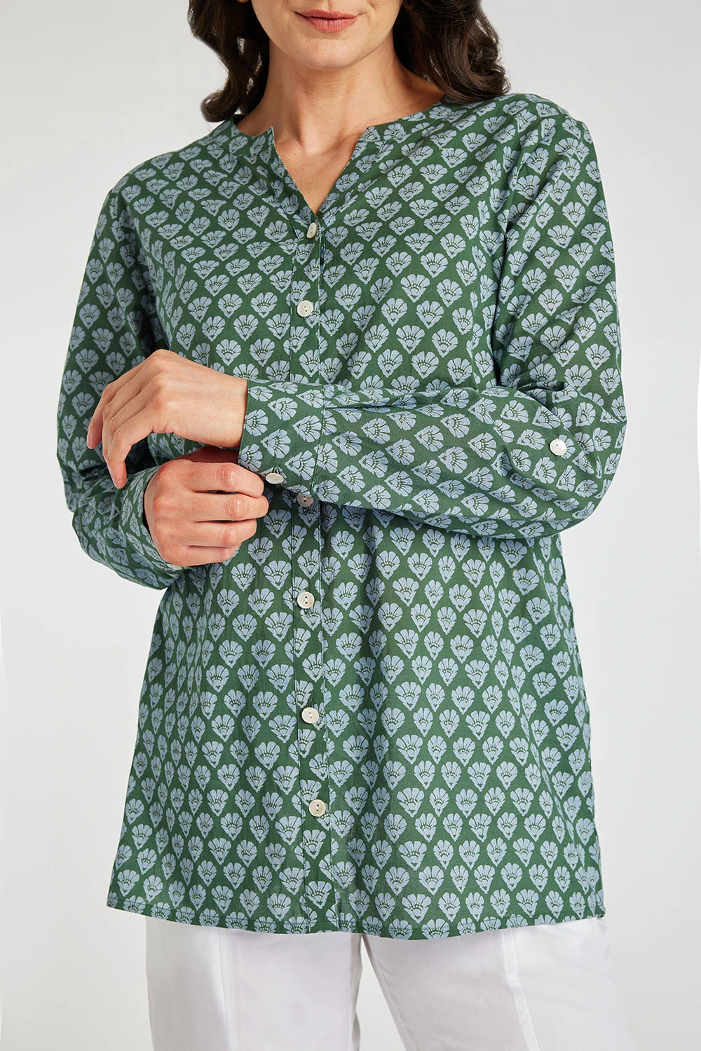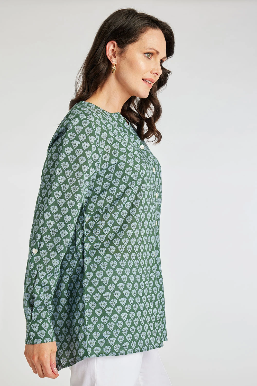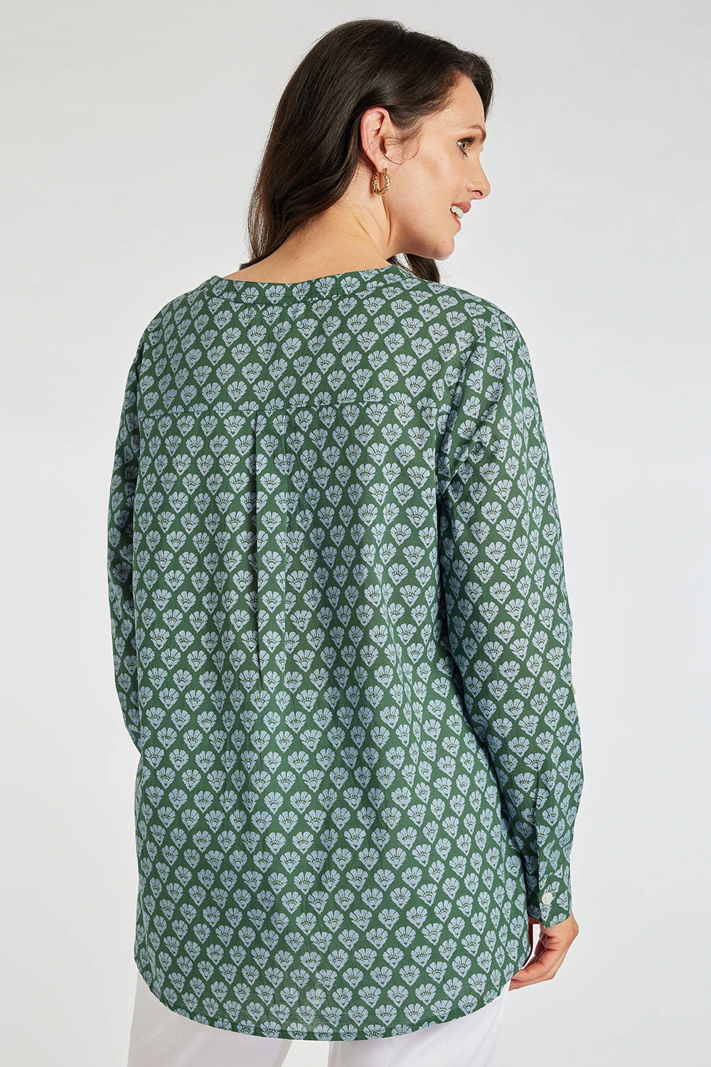 AUTONOMY | For a twist on a classic design, this long sleeve shirt features a beautiful tile print pattern. The buttons do up through the front and it is topped with a notch neckline. Simply team it with your favourite jeans for an easy weekend outfit.