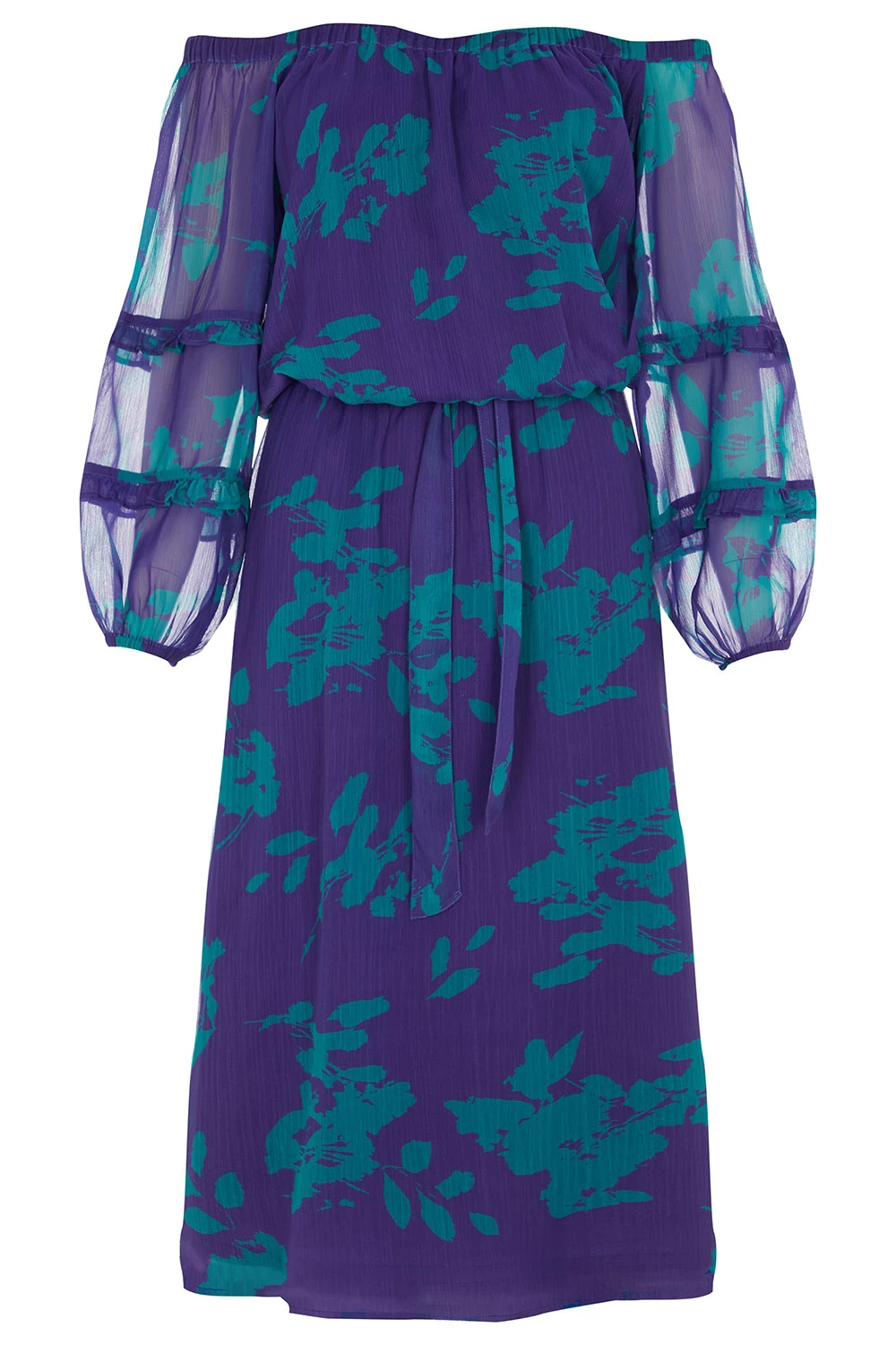 Get ready for Summer with this beautifully designed floral design dress. Complete with long ruffle sleeves and a Bardot neckline to keep you stylish and cool in the warmer months. Pair with a light denim jacket and sandals for a great holiday look.