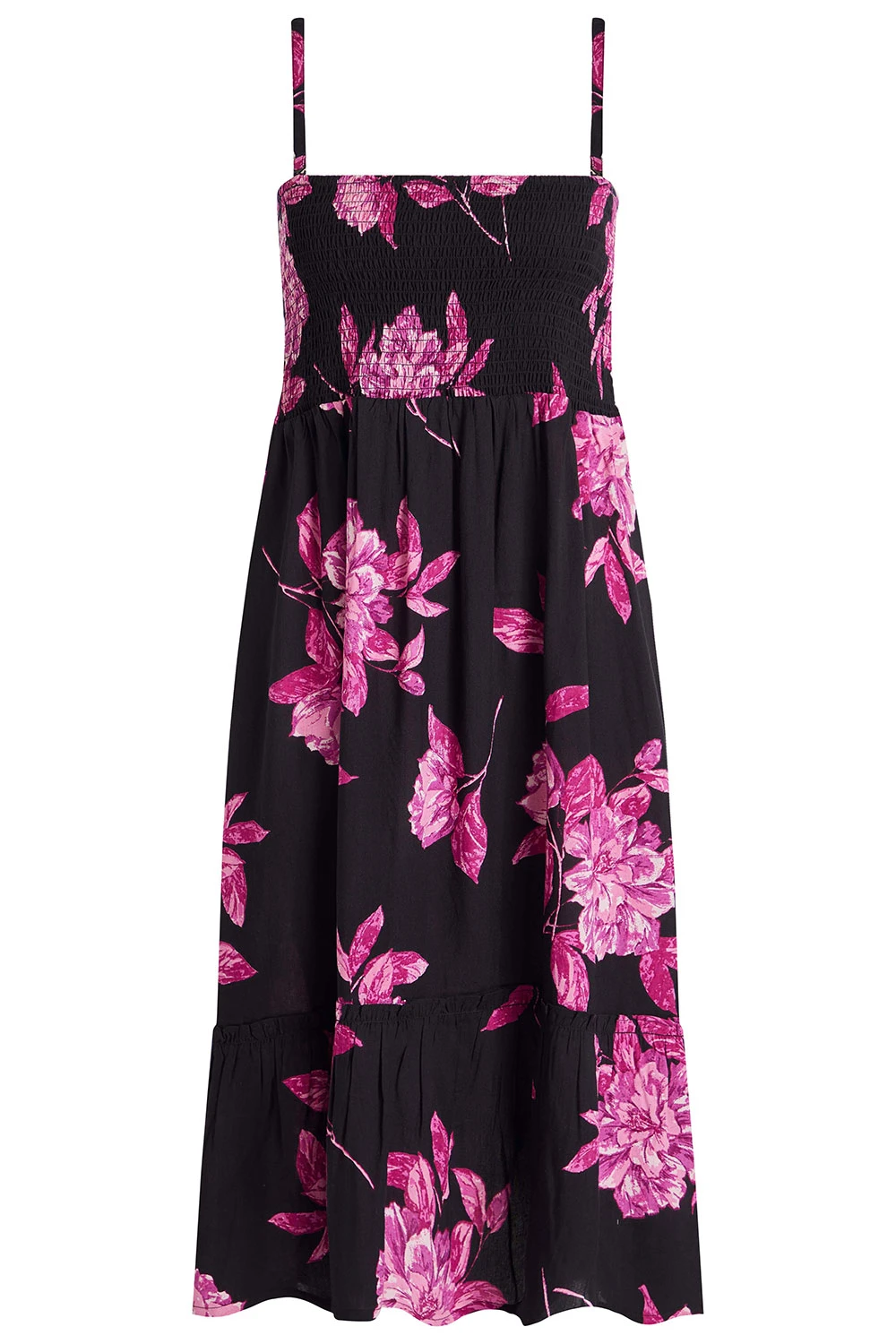 Swish your way through summer in this pretty sundress. With its bright colours and shirred bodice, it is effortlessly feminine. The loose shape and lightweight fabric help to keep you cool on warm days, wear with heels and a shawl at night or over a swimsuit ready for the beach. It also has 3 ways to wear it, strapless, with straps, or as a skirt.
