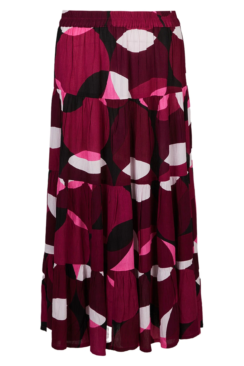 Our circle print tiered crinkle skirt in a soft, breathable material is a summer staple. This versatile piece can be worn on the beach or out to lunch. Team with a cami or a t-shirt and our favourite sandals.