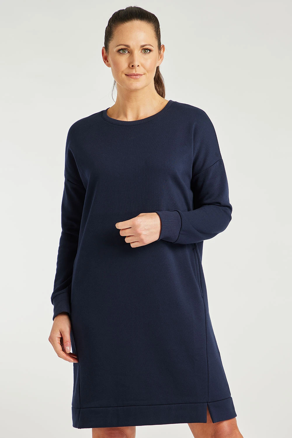 DASH | Add a sweater dress to your collection this winter. Keep warm and fashionable with the added pockets and round neck. The long sleeves and soft material will keep you cosy. Perfect for layering, pair with leggings and a coat for a great winter look.