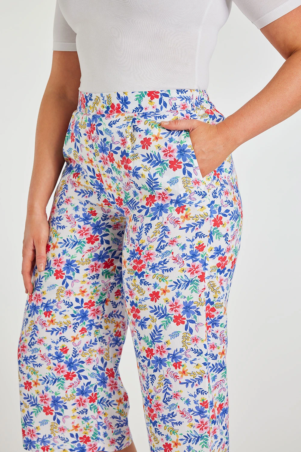 Add these ditsy floral wide leg cropped trousers to your collection this season. Perfect for days out or for an upcoming holiday. These cropped trousers are a part of the Lorraine Loves collection, chosen by Lorraine Kelly. The design is subtle, making them easy to style and a staple for your Summer wardrobe. Wear with your favourite sandals and a white clutch for a great smart casual look.