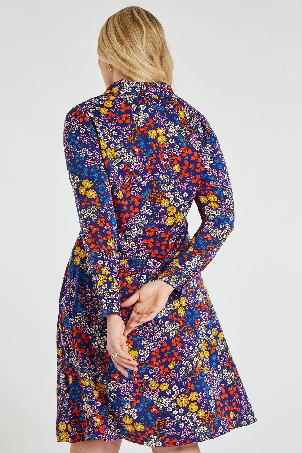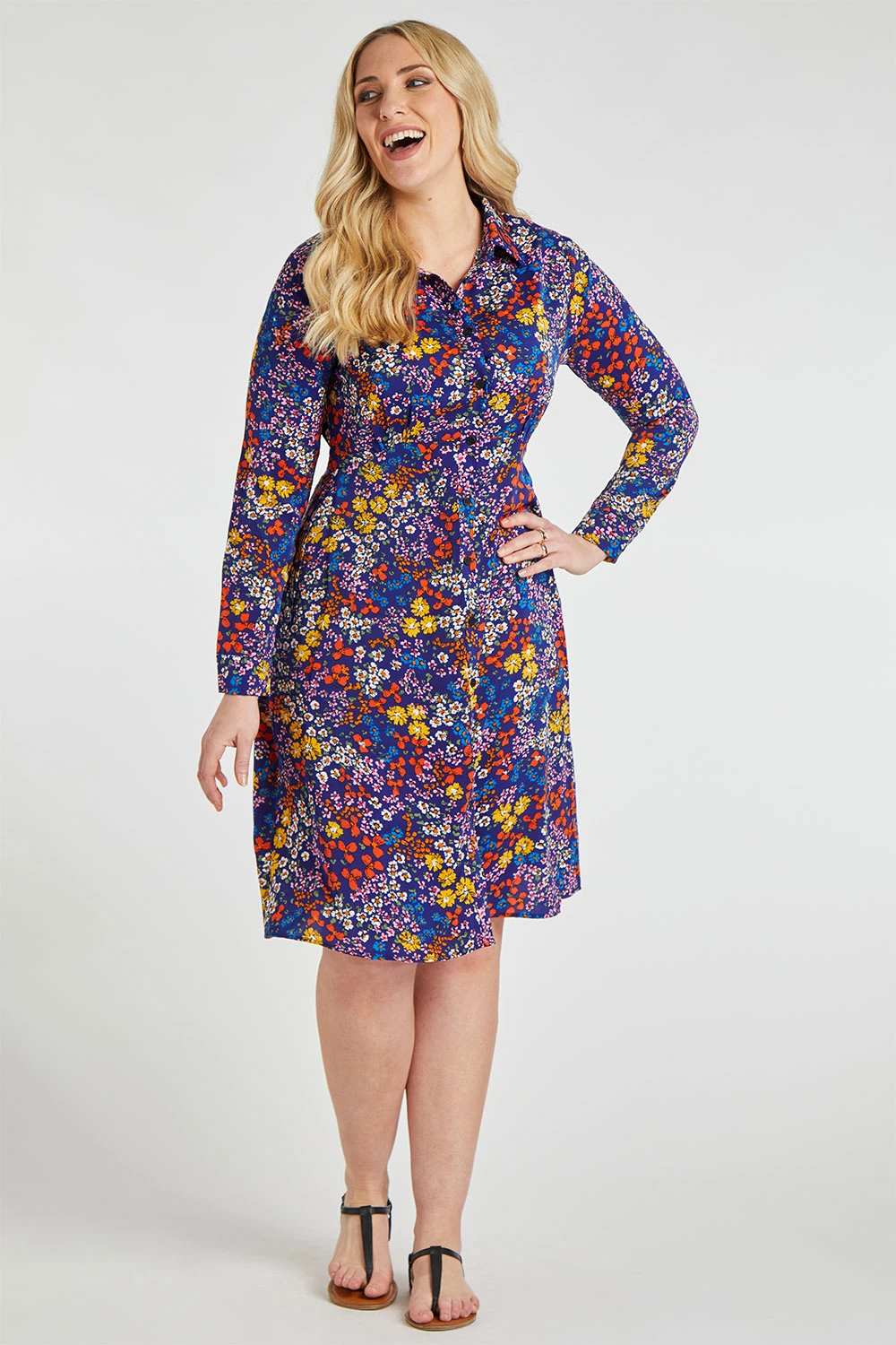 This long sleeve dress comes in an on-trend floral print with a button fastening front. The woven fabric is both comfortable and flattering for an easy everyday look. Pair with heeled boots and accessories for a great Spring look.