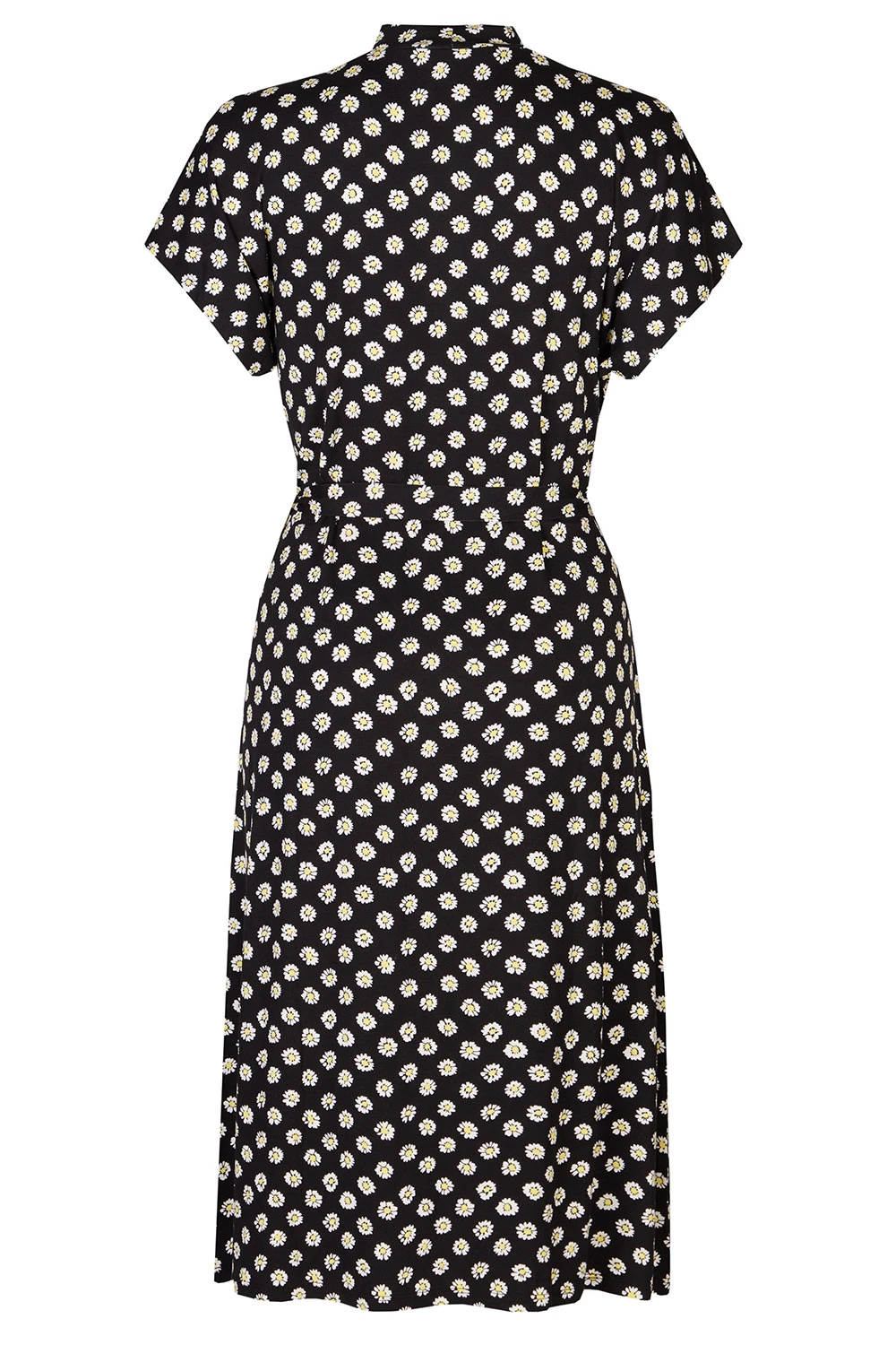 Add this beautifully designed ditsy print dress to your collection this Spring. Complete with high neck and belt detail. The short sleeves and midi length make it a must-have this season. Pair with sandals and a small bag for a great Summer look.