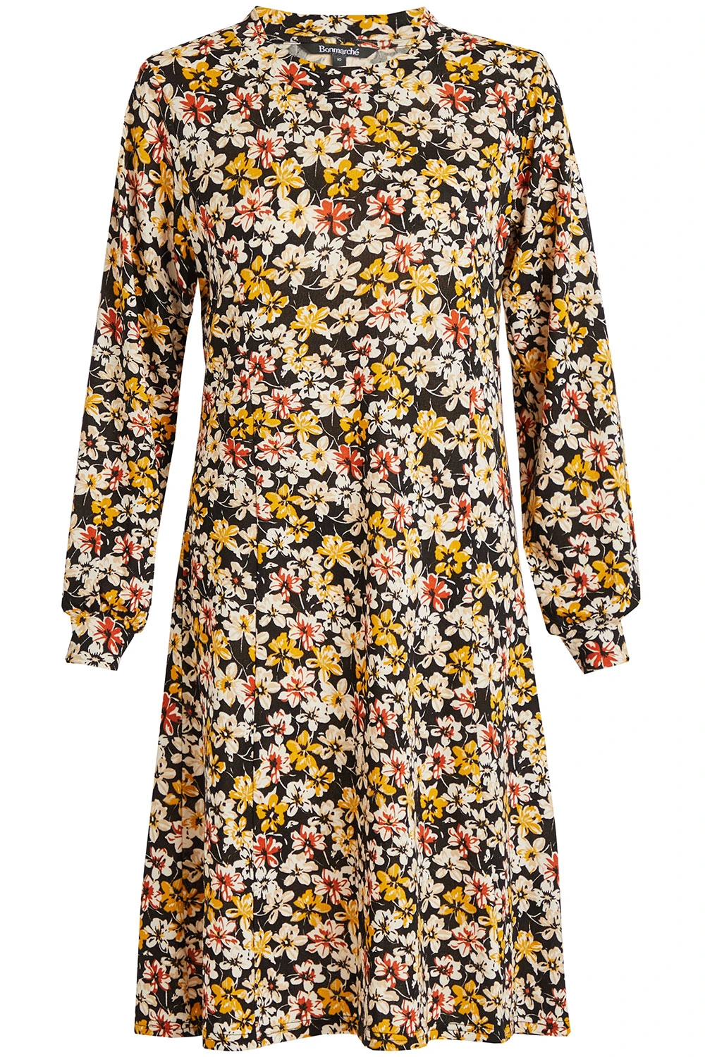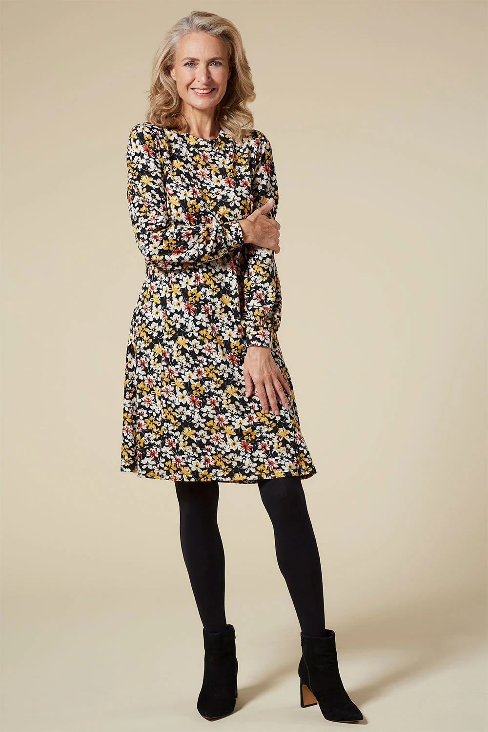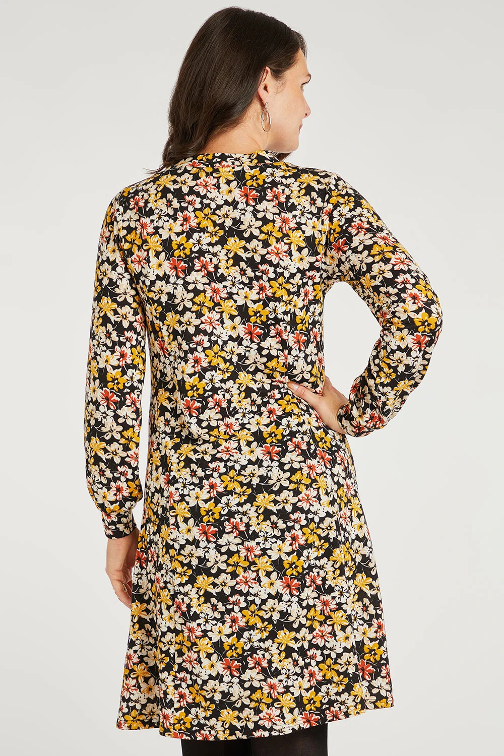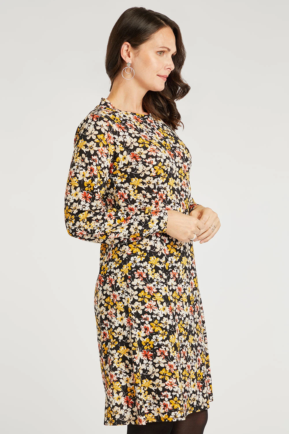 This season’s must-have! This soft-touch dress with a ditsy print is one you’re sure to love. This stylish dress features long sleeves, soft touch fabric and is in a swing style. Style with tights and boots for a pretty outfit for cooler days.