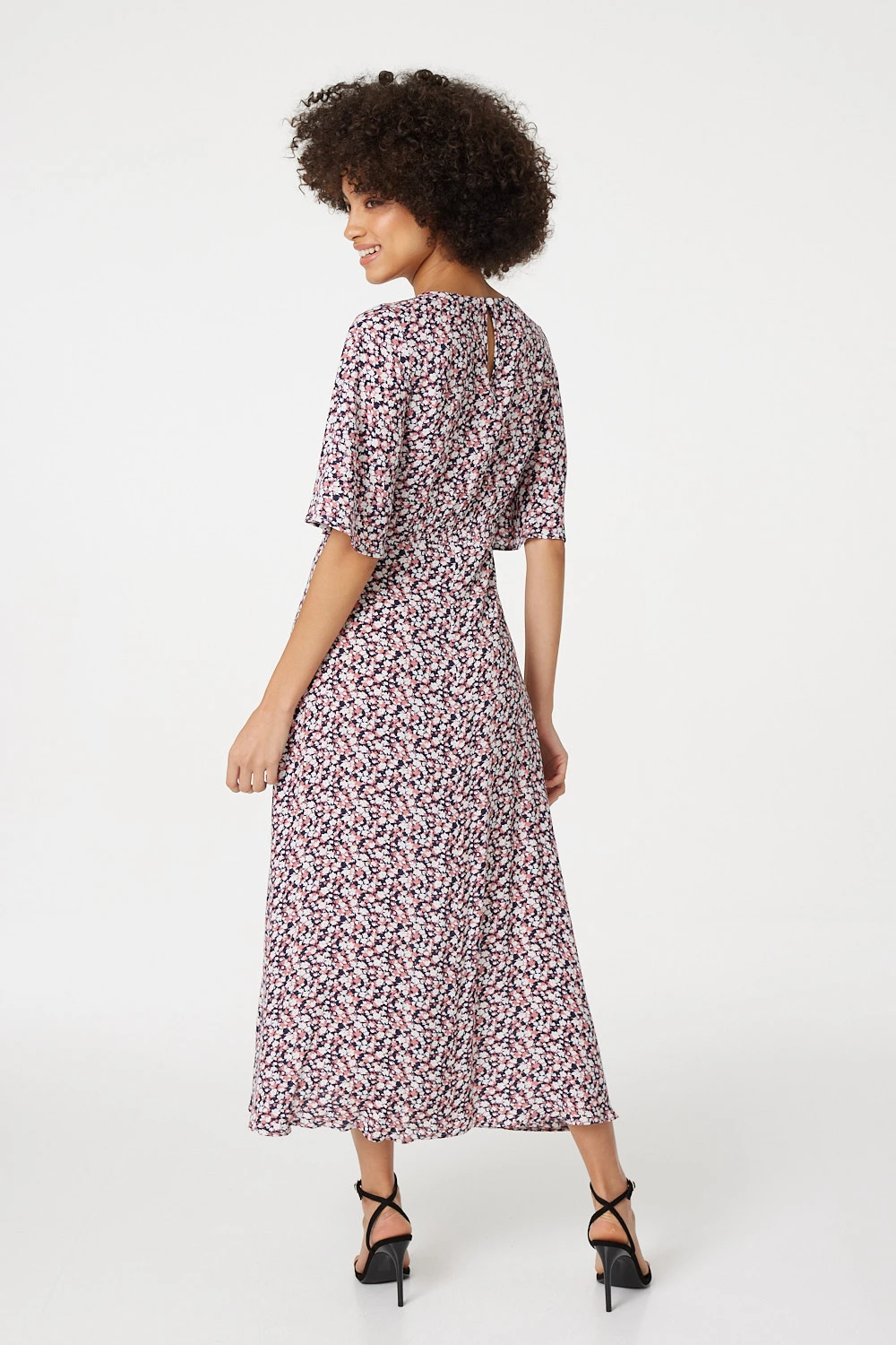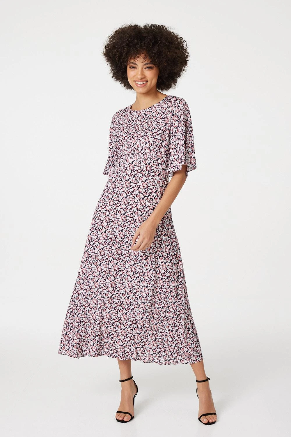 IZABEL LONDON | Every dress collection needs a pretty floral tea dress like this angel sleeve midi. Made from 100% viscose, it has a round neck, floaty 1/2 length angel sleeves, a keyhole back, and a midi skirt. Add some neutral strappy heels and you’ll be good to go for any daytime occasion.