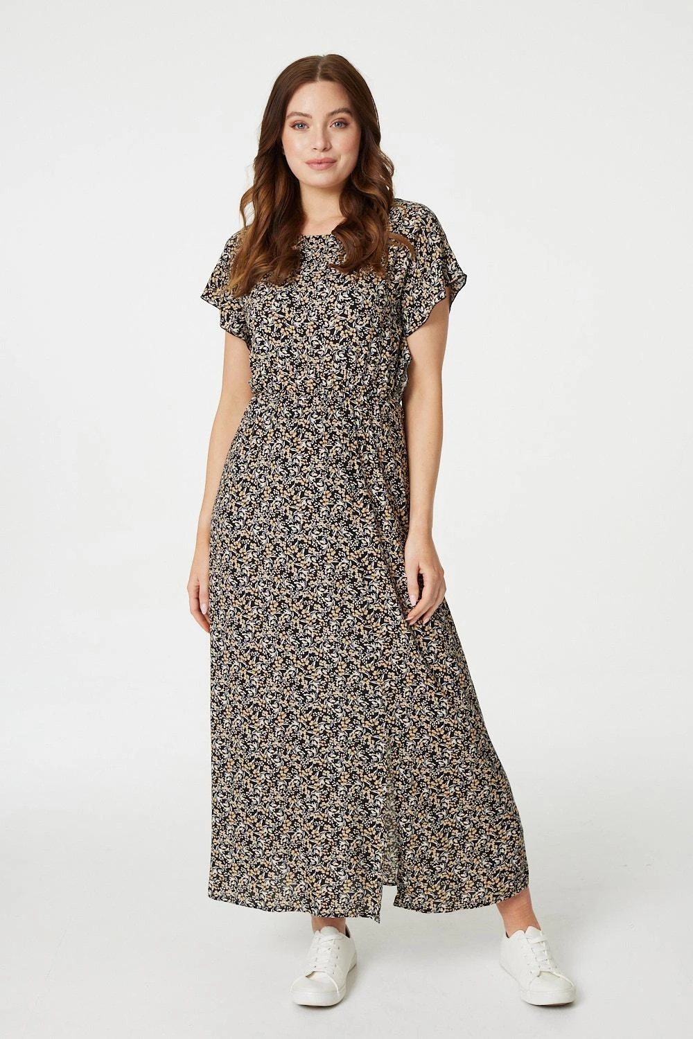 IZABEL LONDON | Add a versatile floral tea dress to your wardrobe with this a-line midi. It has a round neck, frill detail short batwing sleeves, a comfortable elasticated waist, and a midi length hem. Made from 100% breathable viscose to keep you feeling cool all day. Pair with neutral block heels for a chic daytime style.