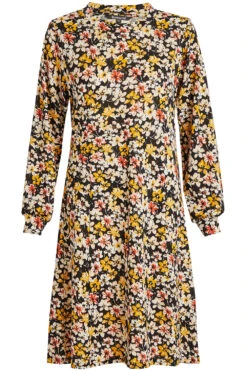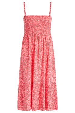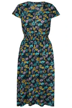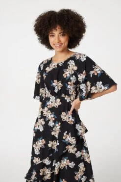 IZABEL LONDON | Add a pretty tea dress to your wardrobe with this floral midi. It has a v-neck, short ruffle sleeves, a shirred front detail, a cinched waist, and a layered midi-length skirt. Pair with strappy heels for a feminine style to wear to any daytime occasion.