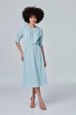 IZABEL LONDON | Every closet needs a versatile tea dress like this printed a-line midi. It has a round neck, a shirred waist, 1/2 length puff sleeves with shirred cuffs, a keyhole back, and a midi-length skirt. Pair with strappy heels for a chic warm weather style that’s perfect for any daytime occasion.