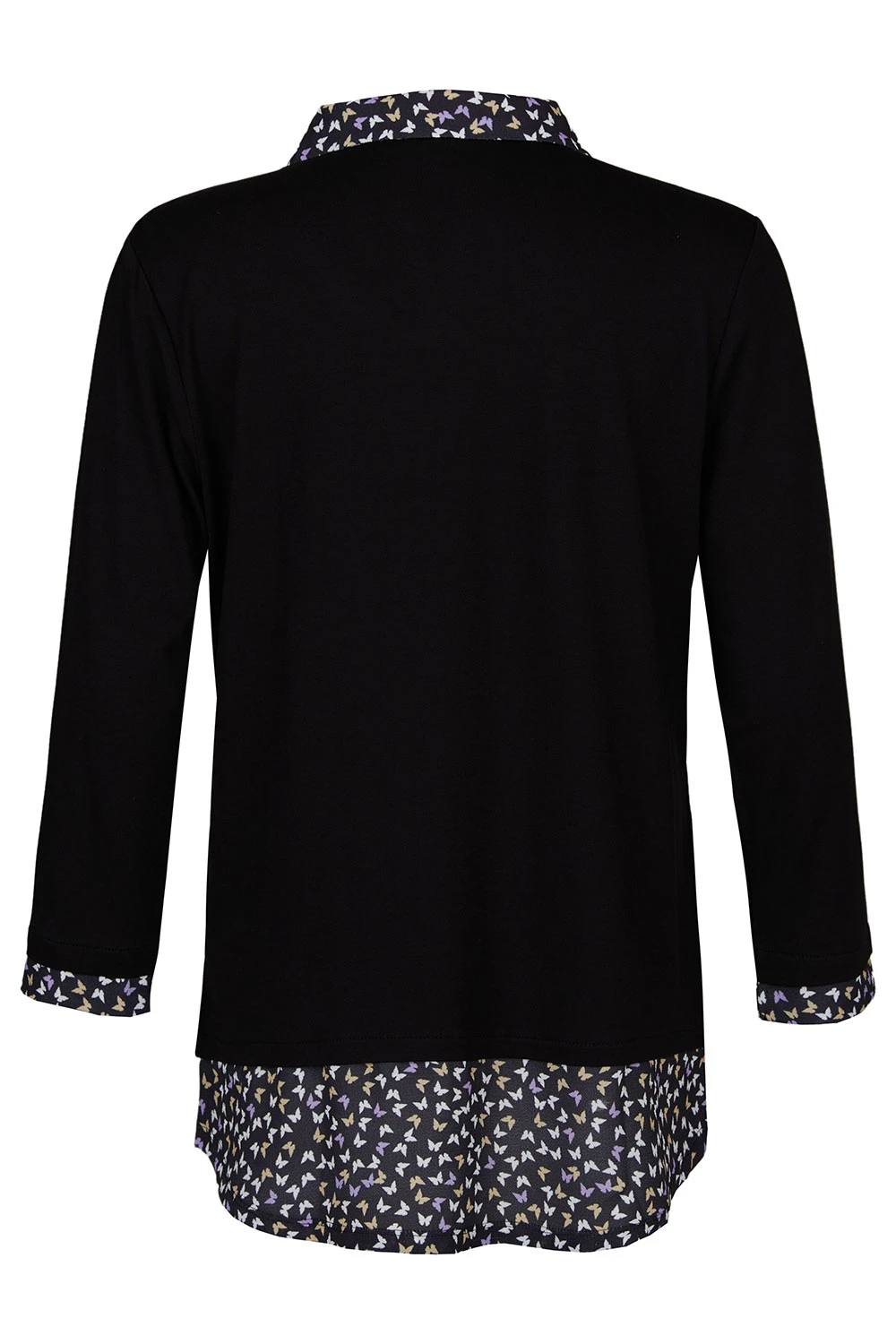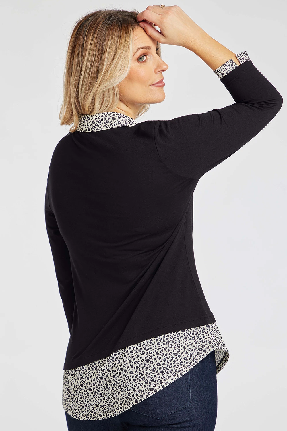 This contrast 2 in 1 top is perfect to dress up any outfit. The animal print design and long sleeves make it comfortable and fashionable. Pair with jeans for a casual look or with a skirt and boots for a great office outfit.