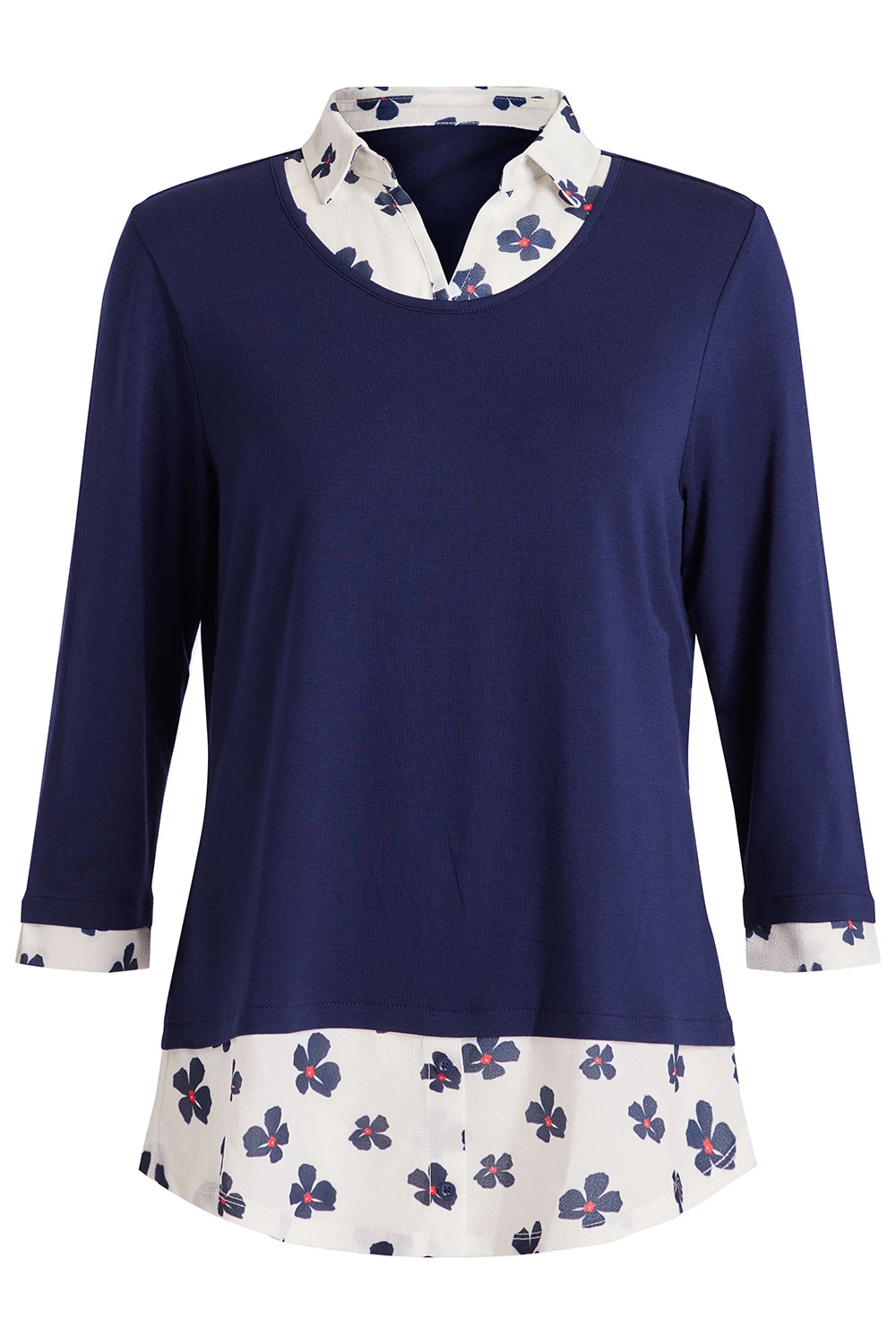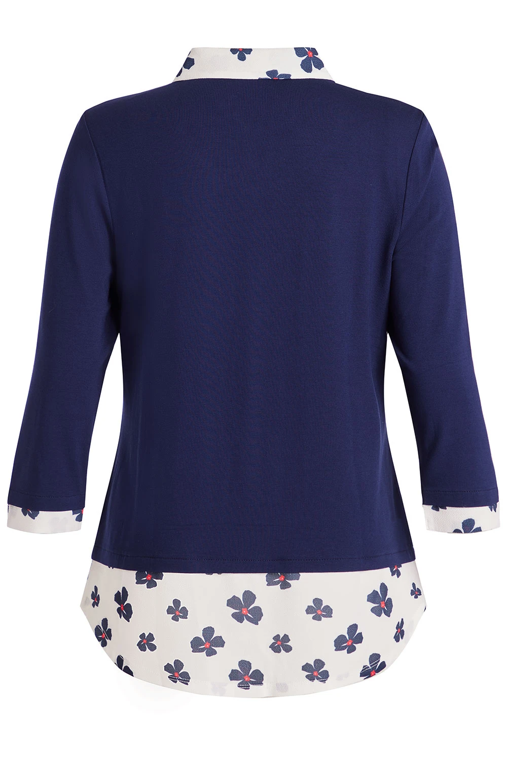 This contrast 2 in 1 top is perfect to dress up any outfit. The floral design and long sleeves make it comfortable and fashionable. Pair with jeans for a casual look or with a skirt and boots for a great office outfit.