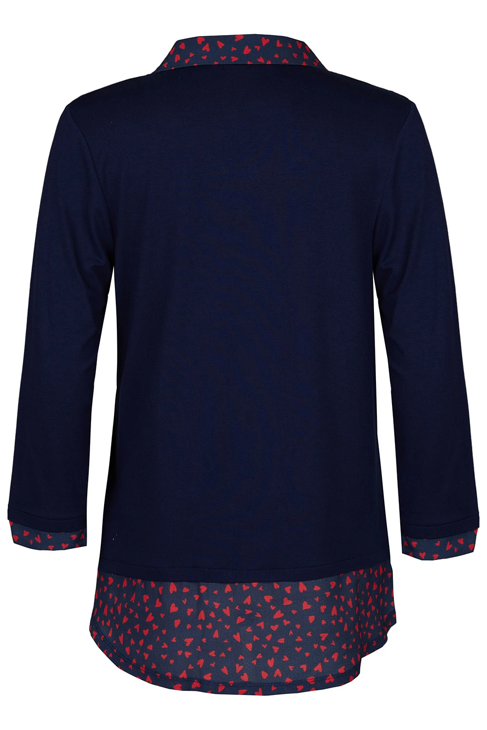 This contrast 2 in 1 top is perfect to dress up any outfit. The heart design and long sleeves make it comfortable and fashionable. Pair with jeans for a casual look or with a skirt and boots for a great office outfit.