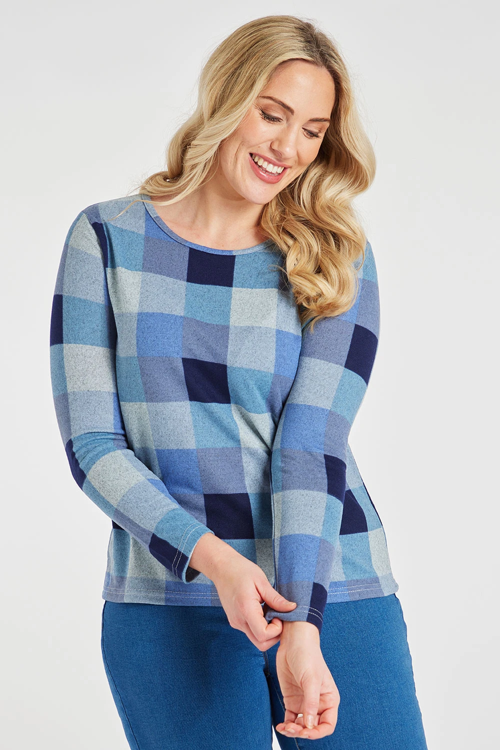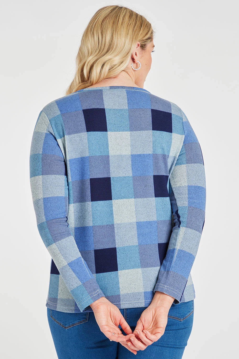 This blue check top is a great staple for your Spring wardrobe. It is a versatile piece that can be dressed up with a skirt and boots or with jeans and ankle boots for a casual look.