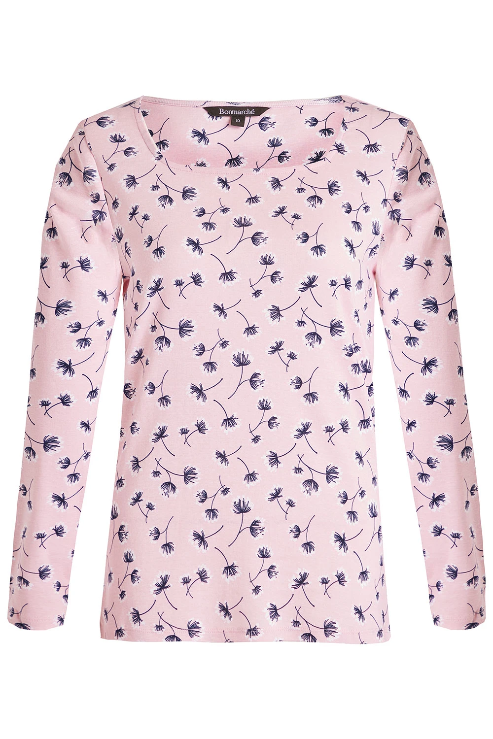 This floral print square neck top is a great twist on a classic. The purple flowers against the pink background make them stand out and the long sleeves will keep you warm in winter. Pair with blue jeans and trainers for a perfect casual look.