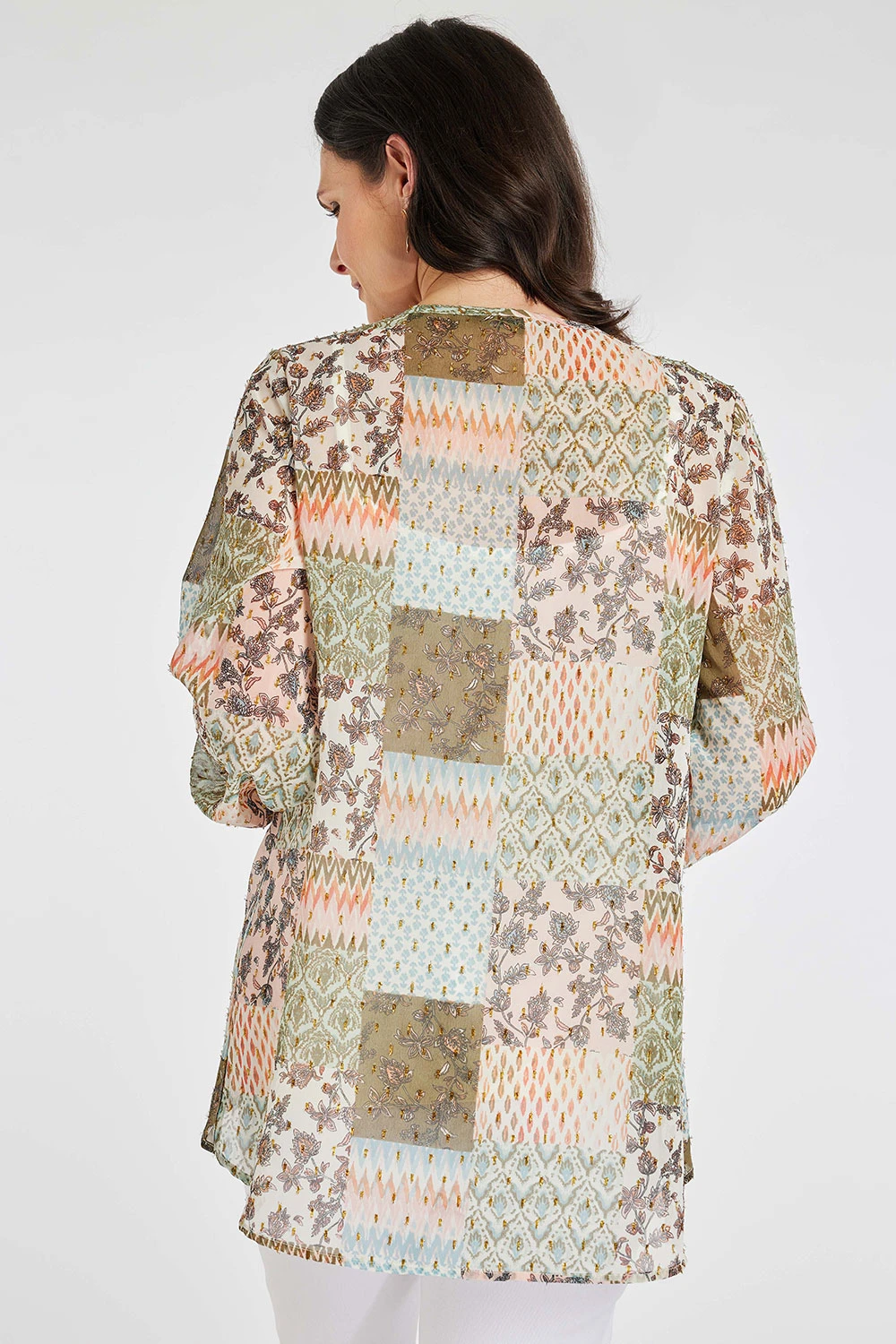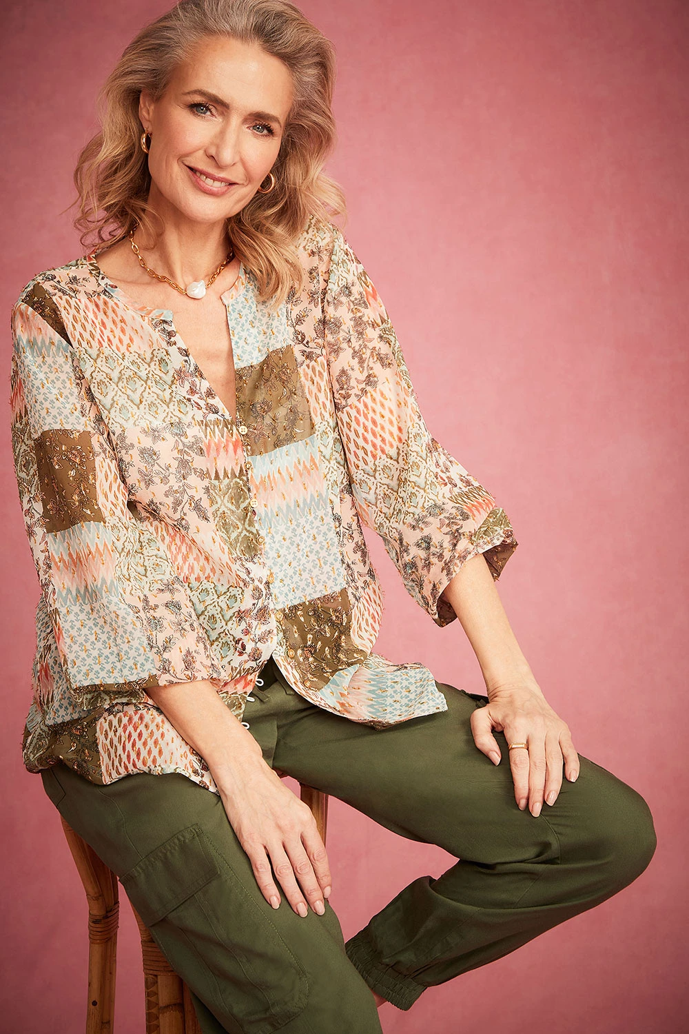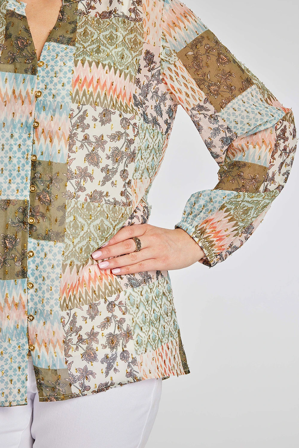 Stand out this season with this patchwork design blouse. Perfect for wearing on colder days in Spring and the pastel colour scheme matches well with the seasons. Complete with long sleeves and a floral design, makes this a must-have. A great blouse handpicked by Lorraine Kelly
