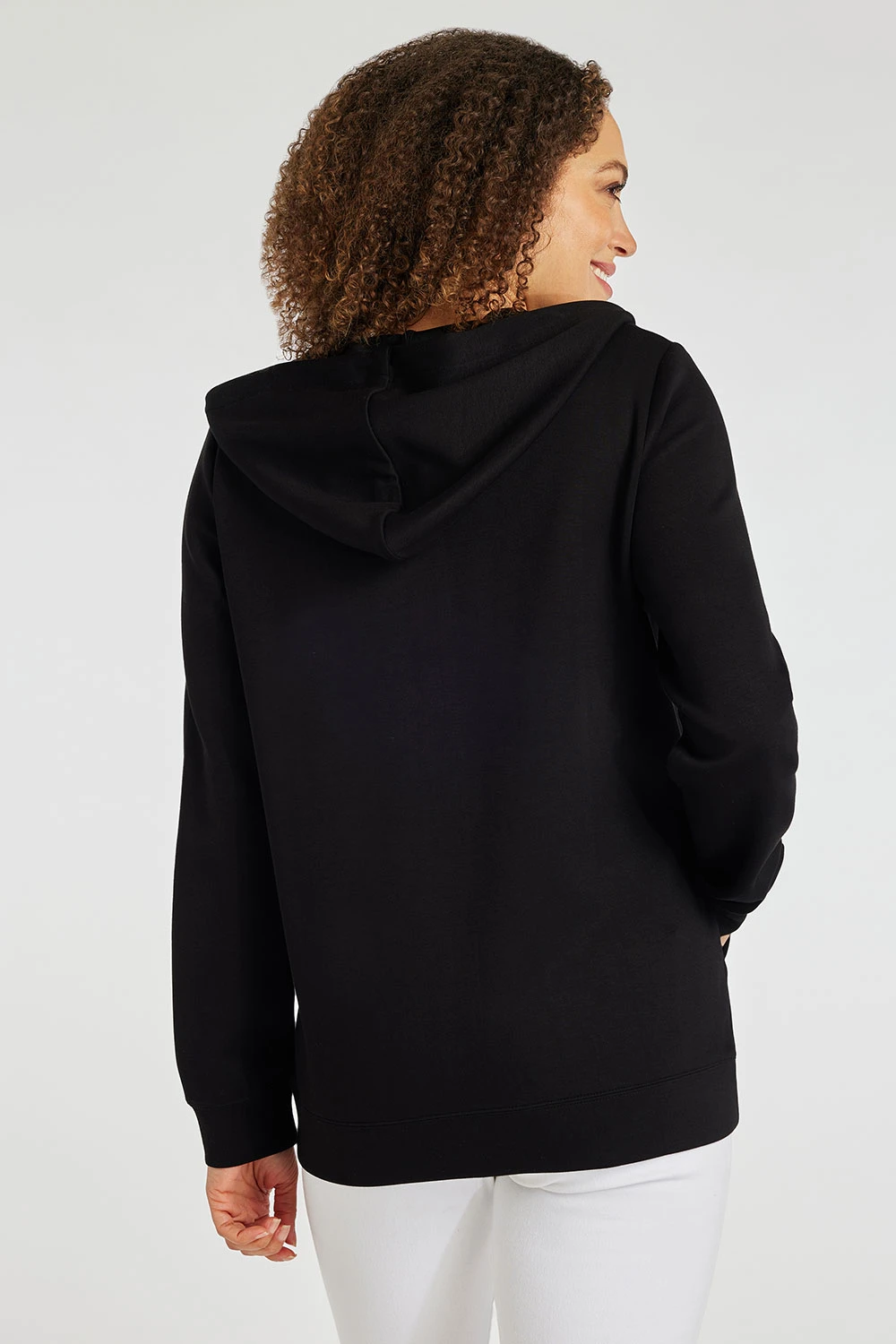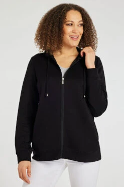 Keep warm on the colder days in Spring with this long sleeve, hooded jacket. Complete with zip through design and a hood to keep cosy makes this perfect for lounging at home. Wear with leggings or joggers for a great casual outfit.