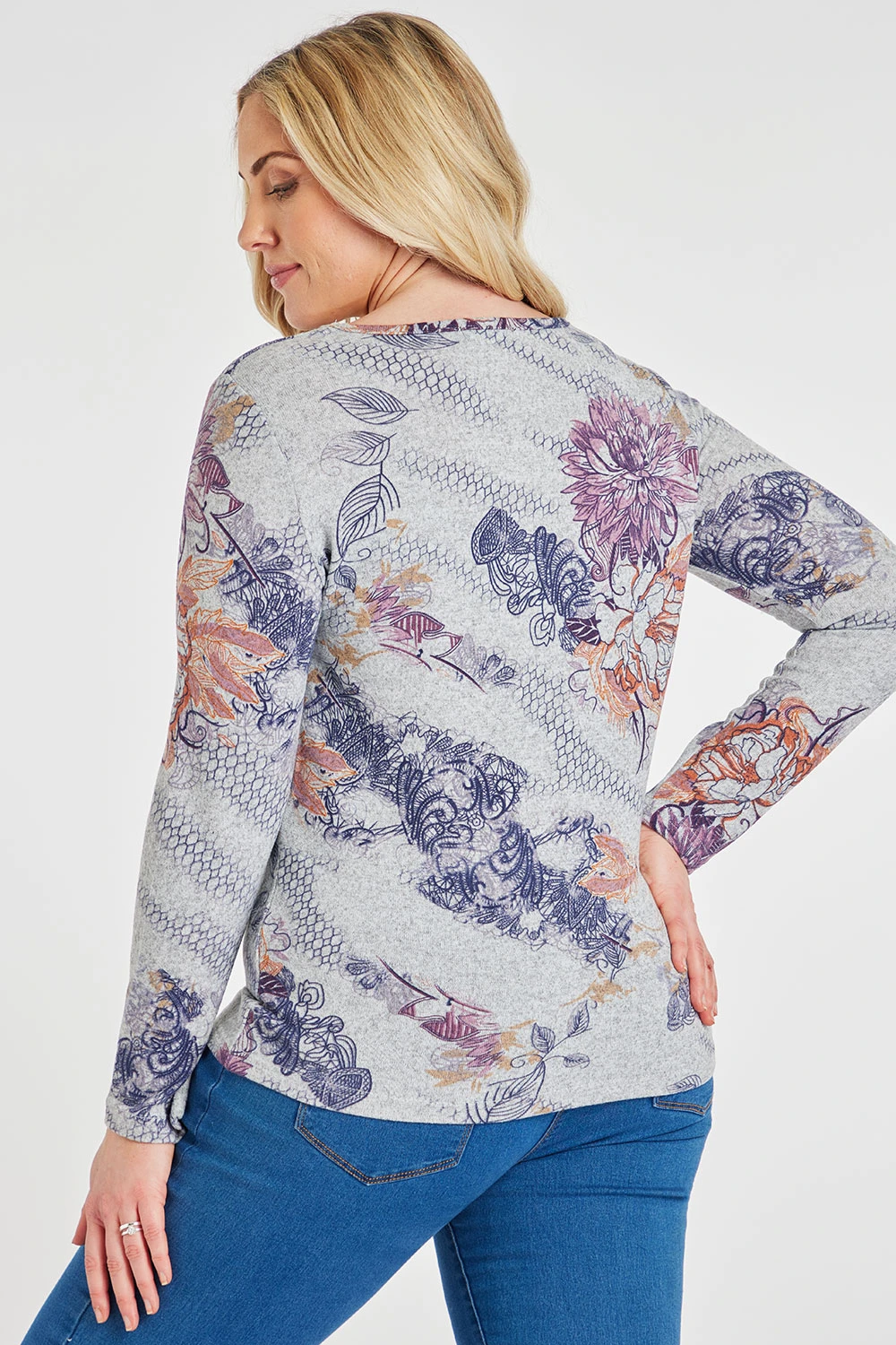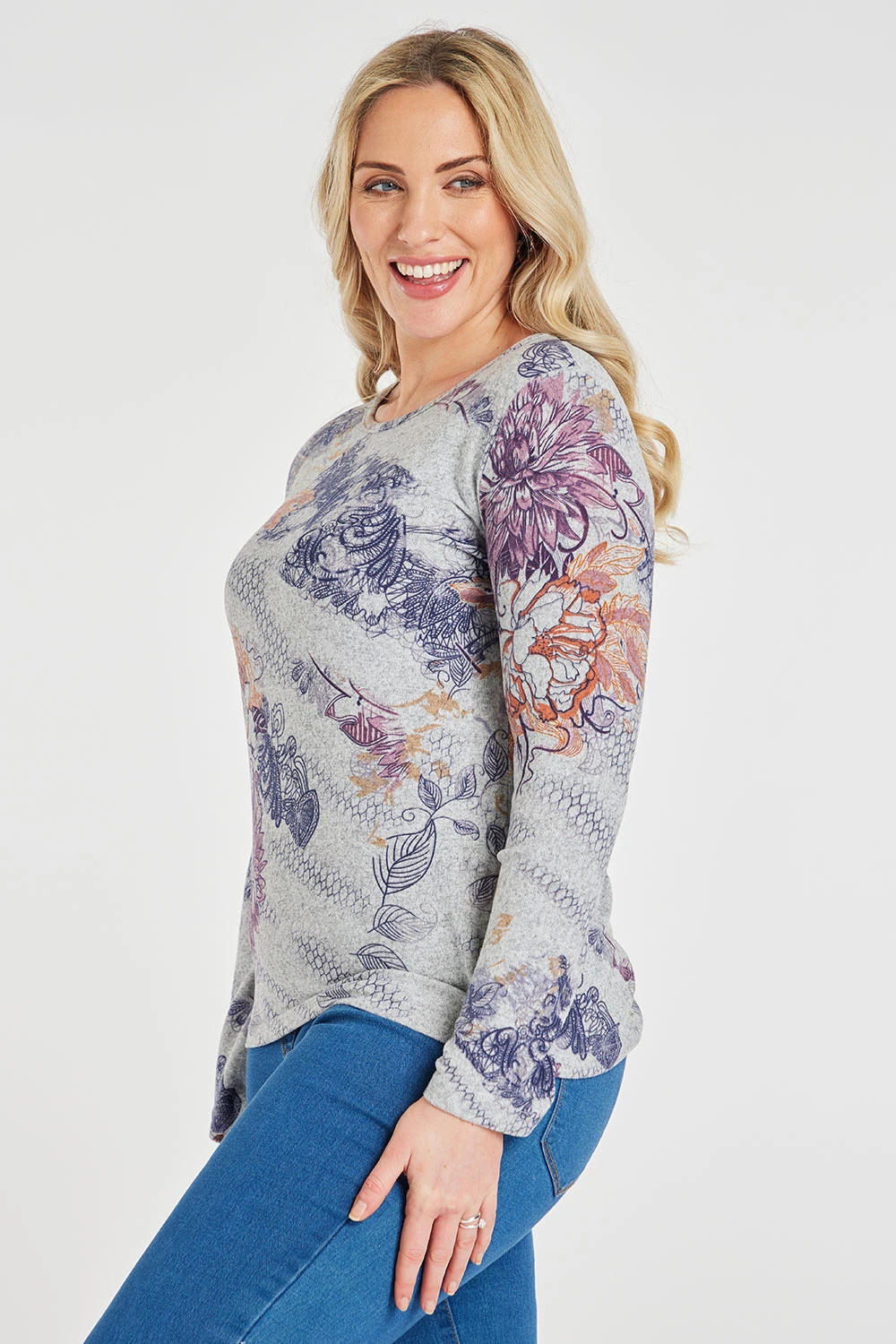 This beautifully designed floral top is great to pair with jeans for a casual look. The mixed floral pattern and colour scheme adds a feminine look. The round neck and long sleeves are perfect for keeping you comfortable and stylish.