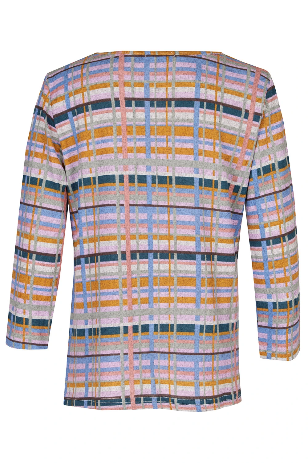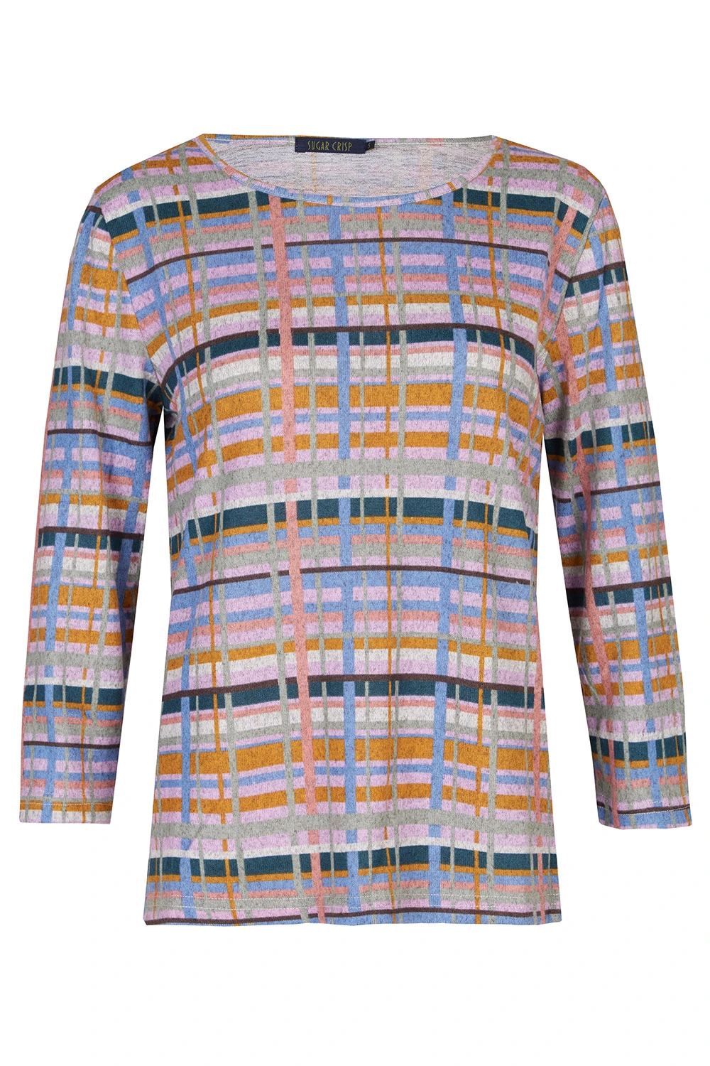 Add this multi-coloured check pattern top to your wardrobe this Spring. The pastel colour scheme adds a feminine touch while the long sleeves and round neck are for added comfort. Pair with jeans and trainers for a casual look.