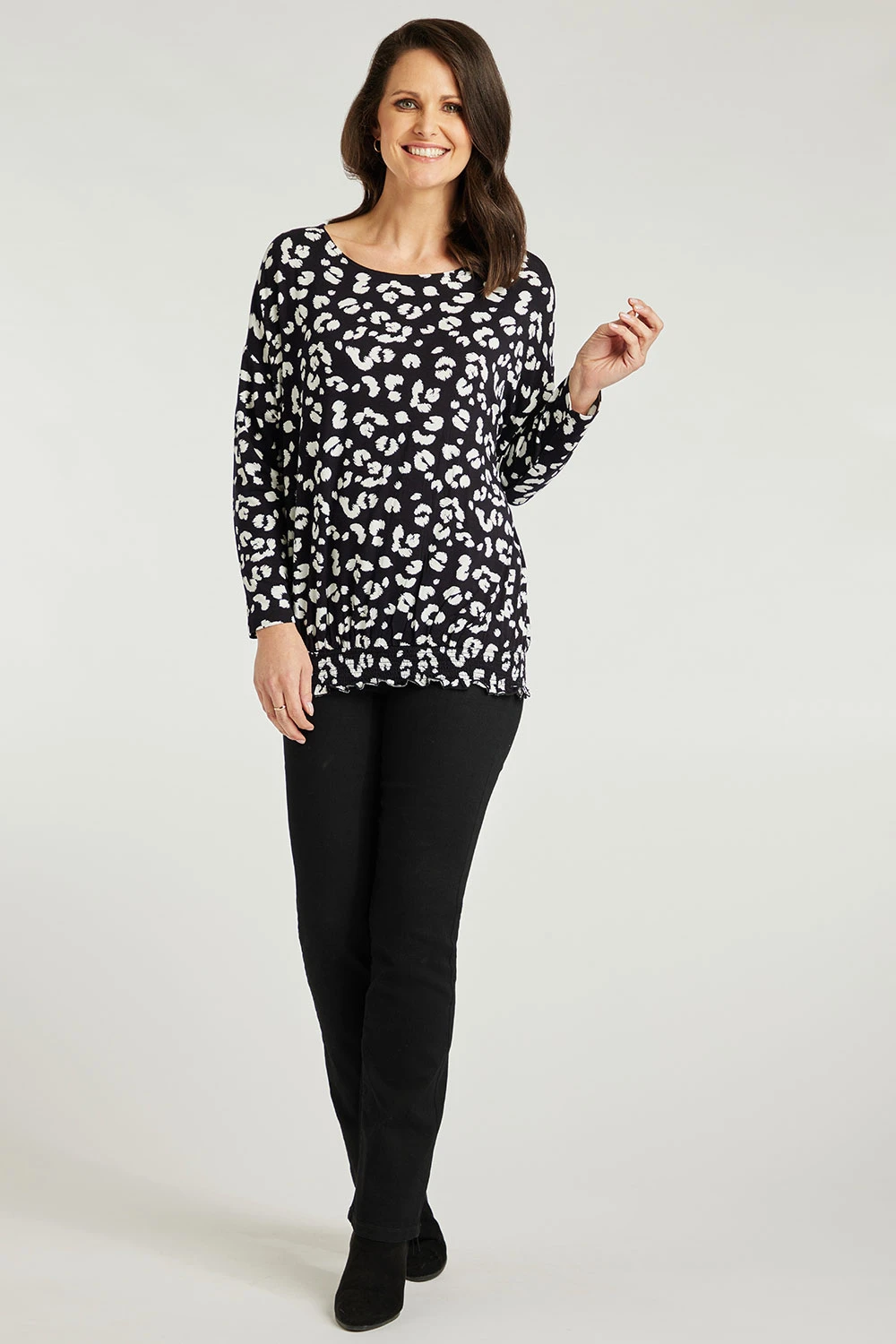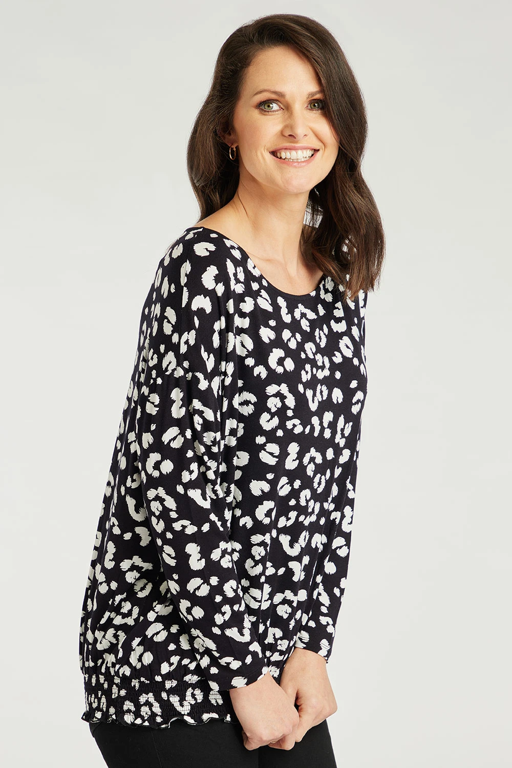 Add a fun animal print to your wardrobe this season with this batwing-style top. The black and white colour makes it easier to pair items you already have in your wardrobe and can be styled for any occasion. Wear with boots and jeggings for a smart casual look.