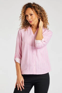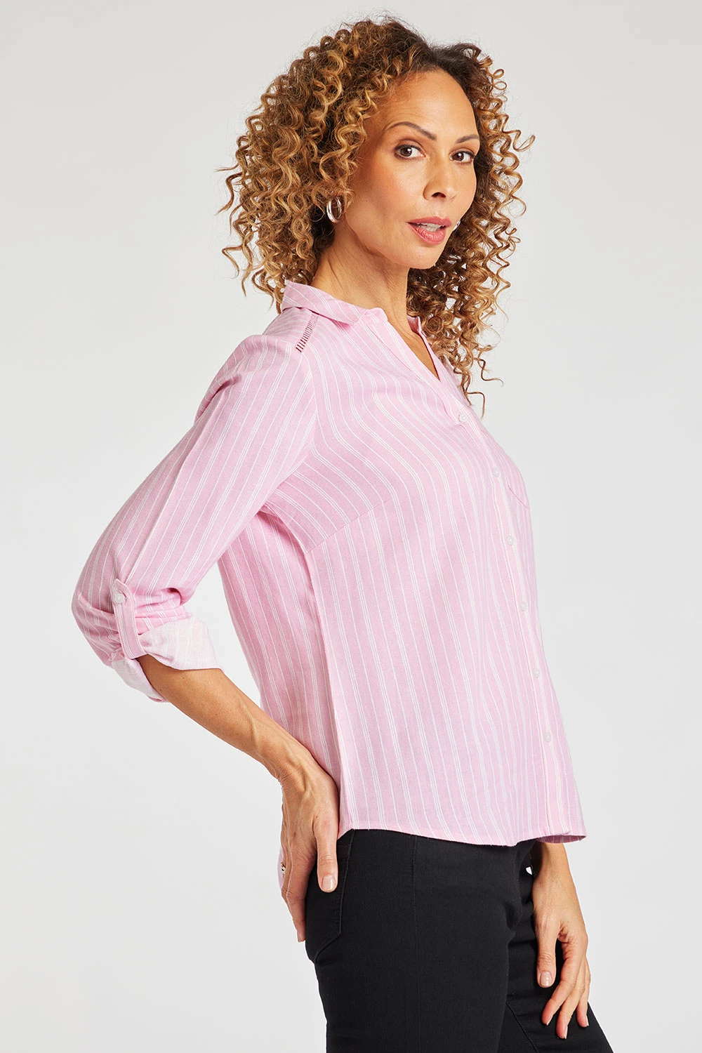 Add this striped long-sleeve shirt to your collection this Spring. The long sleeves and collar style would make it perfect for an office look. The striped design and the subtle colour scheme make it a must-have this season.