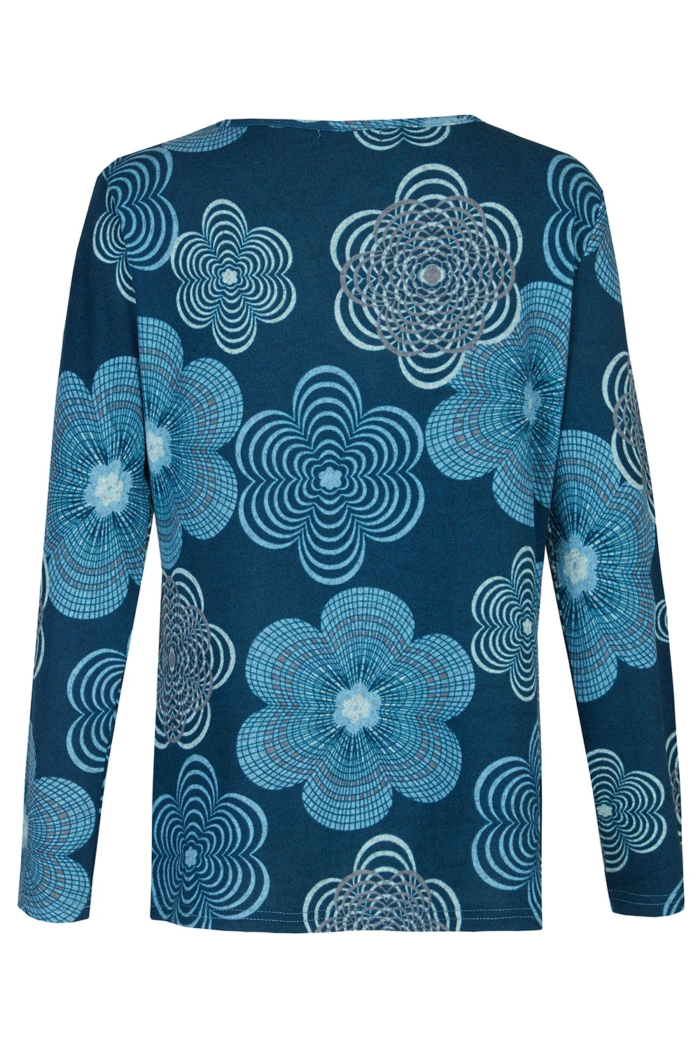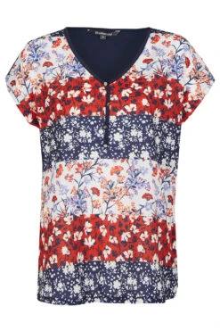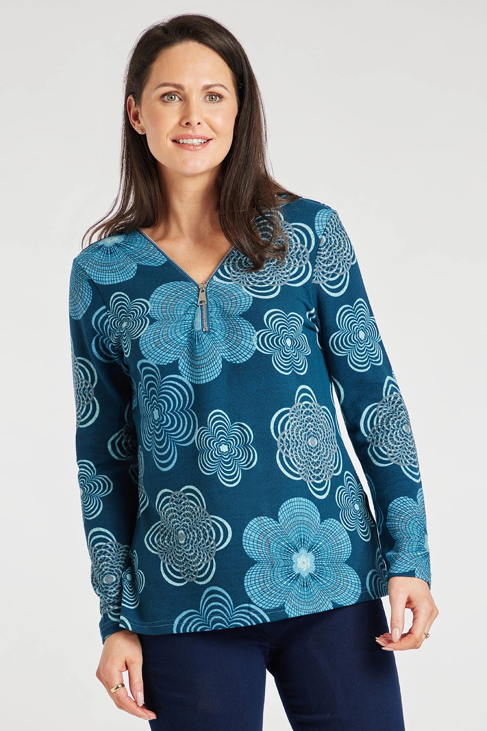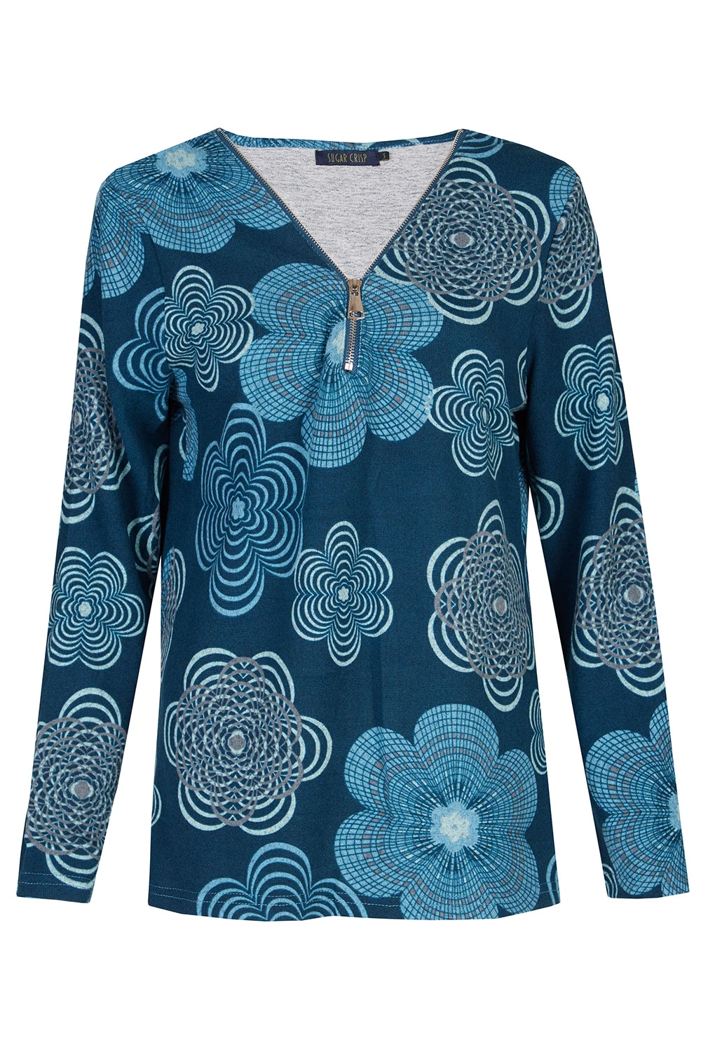 This large floral print top is a must-have in your Spring time wardrobe. The bold pattern and blue colour scheme make it a stand-out piece. The V-neckline is created with zip front detail and long sleeves to keep you comfortable. Pair with jeans and heeled boots for a smart casual look.