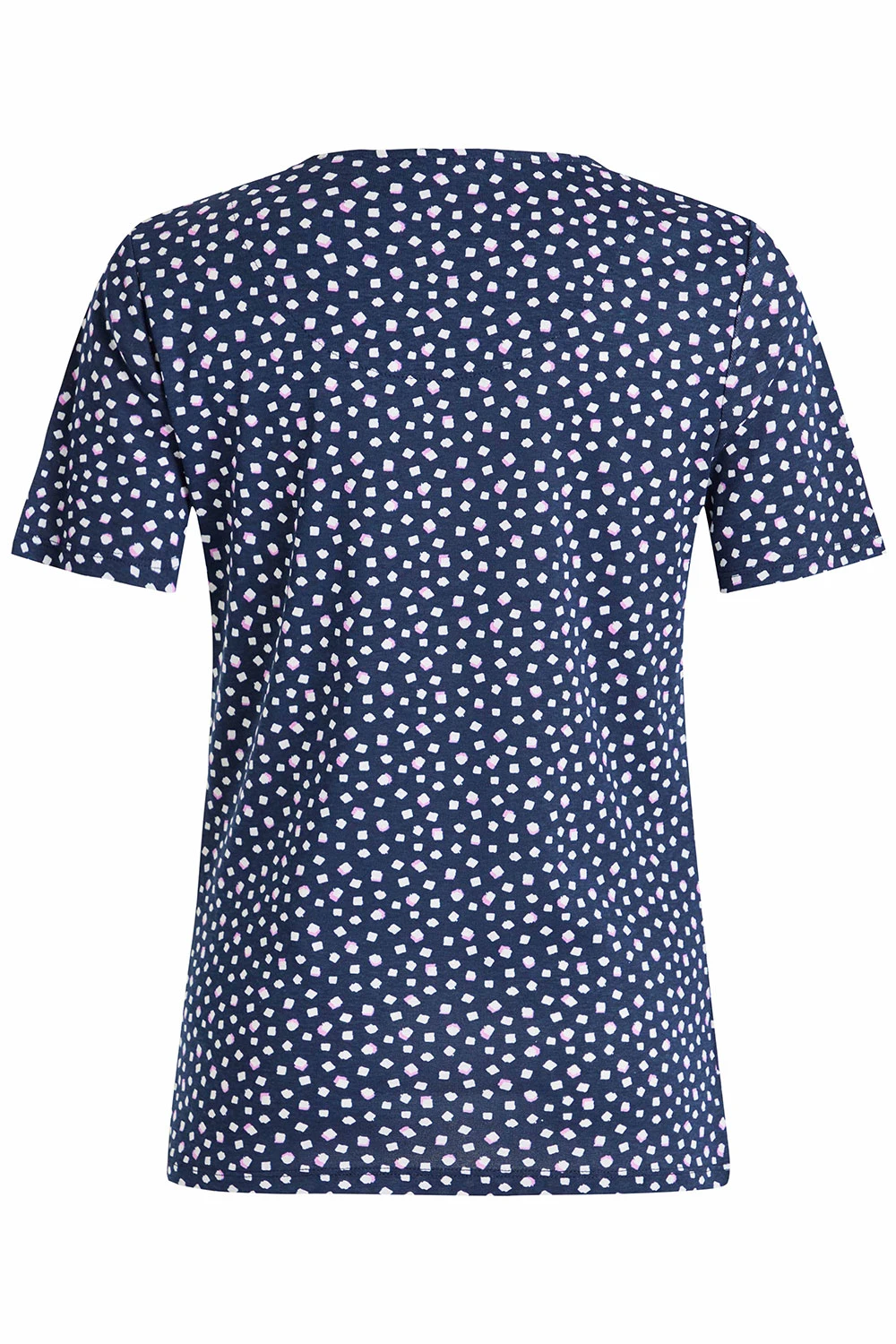 This navy scoop neck printed top is a great piece for your wardrobe. The square dot print and the colour palette make it versatile and easy to wear with other options in your wardrobe. Pair with your favourite jeans and add boots for a casual weekend look.