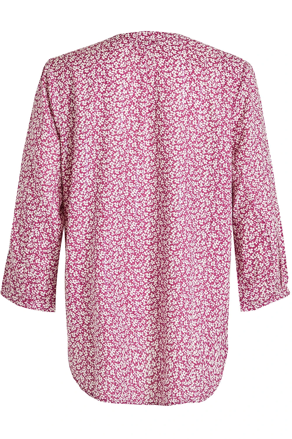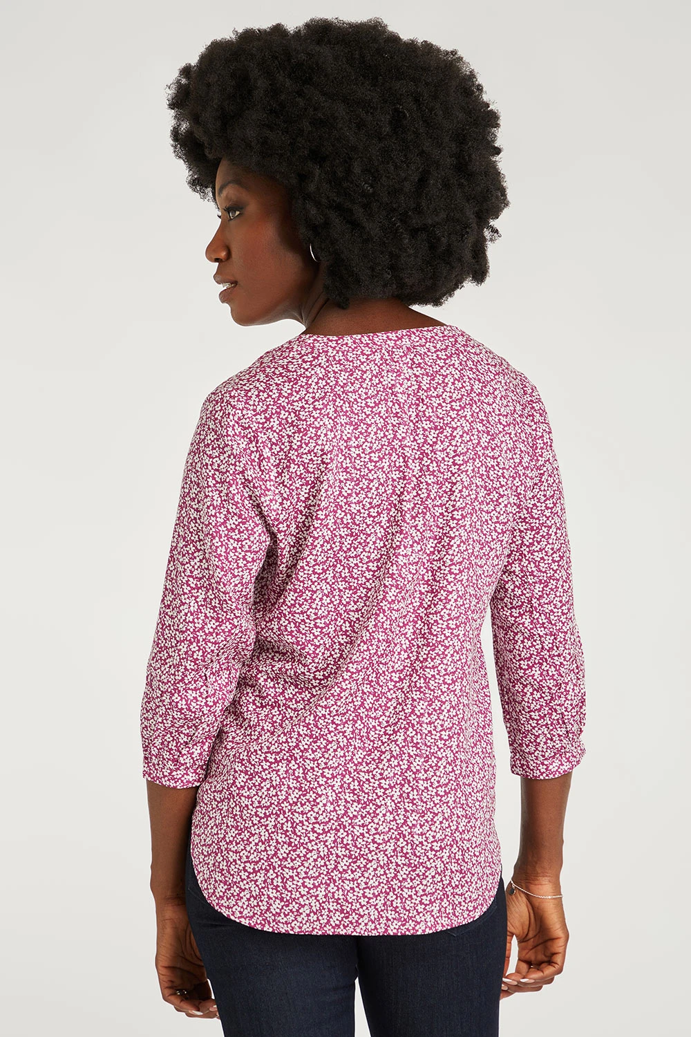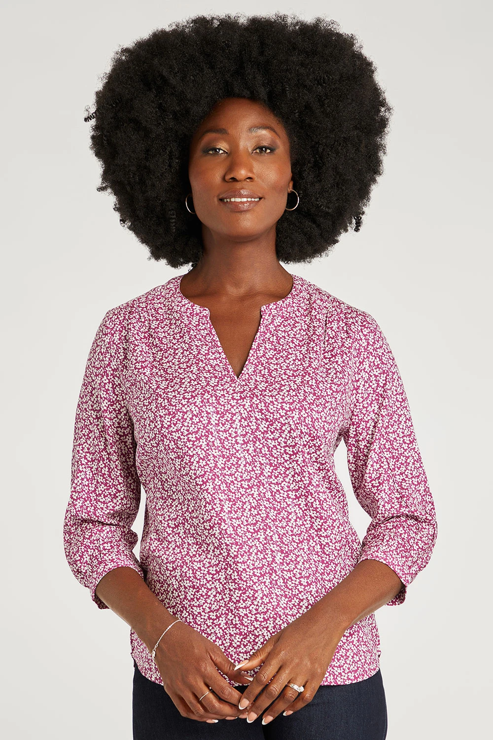 This pretty ditsy print blouse with a dipped hem and long sleeves will become a favourite in your wardrobe. Featuring, a flattering notch neck this overhead style shirt is easy to style, simply team it with your favourite jeans for a casual everyday look.