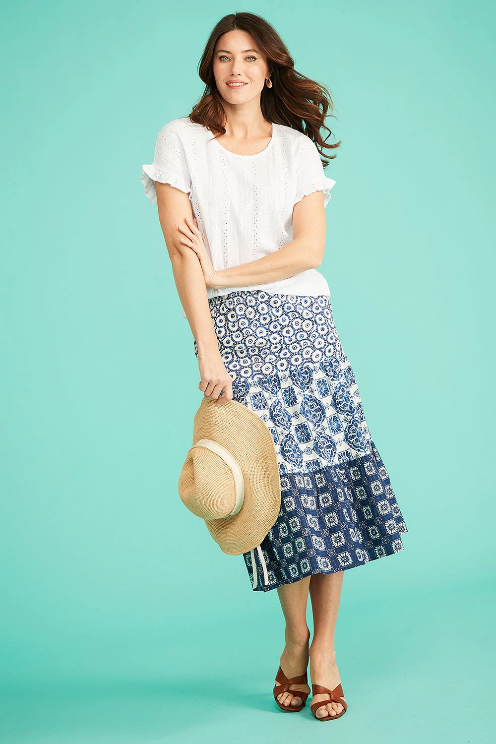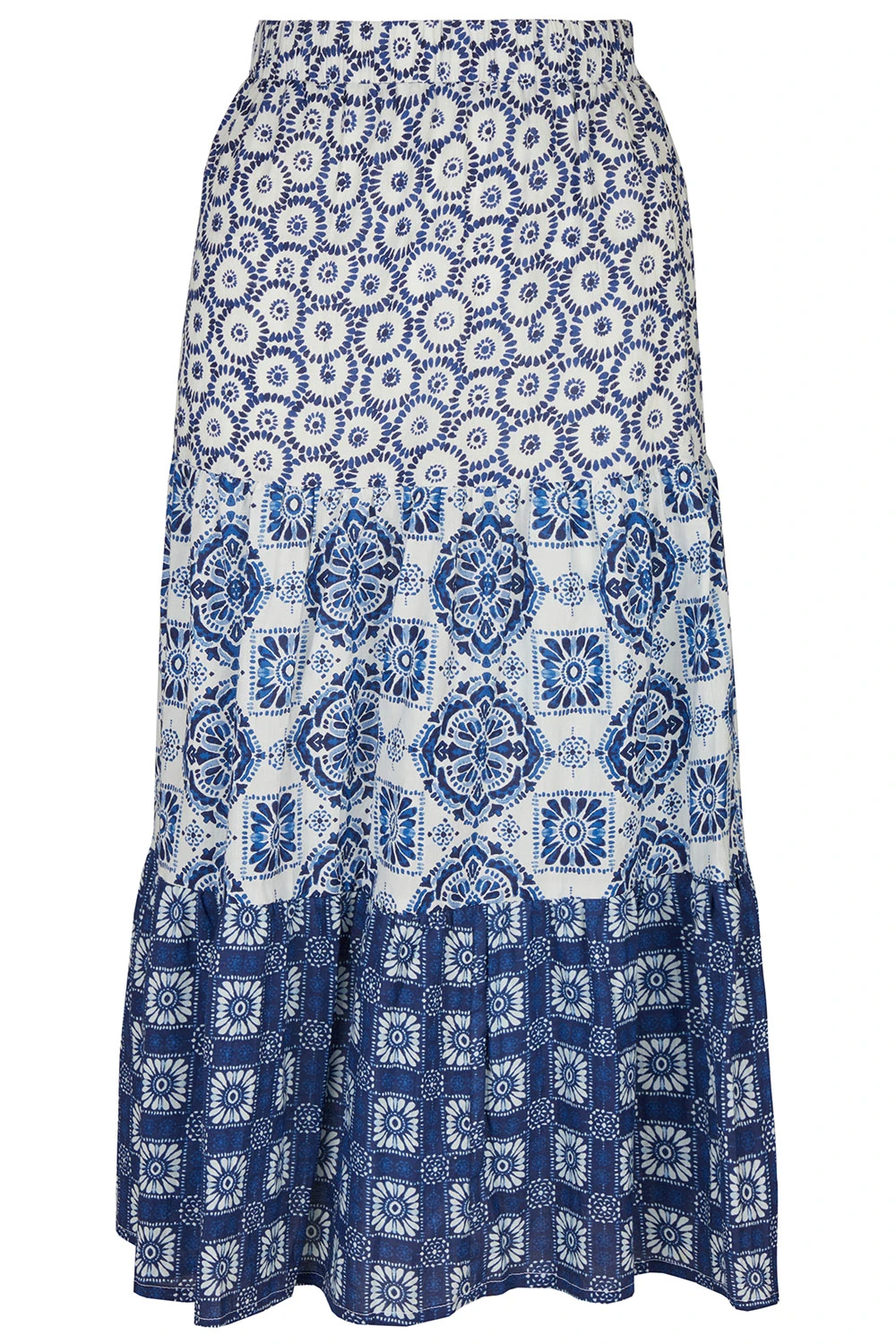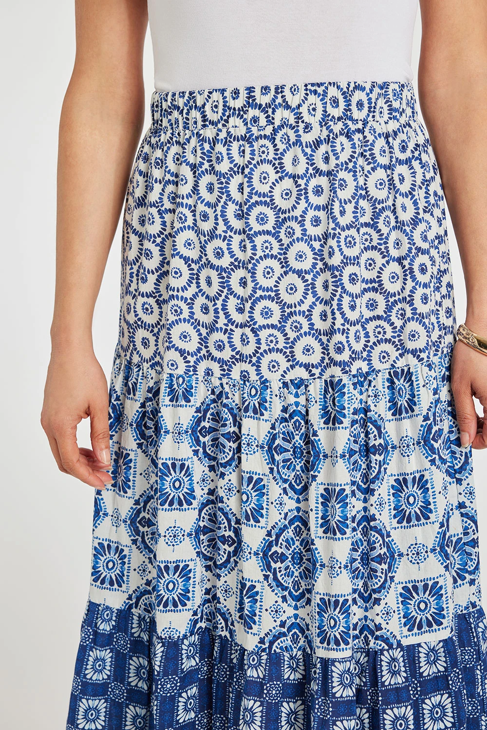 Stand out this season with this painted tiles tiered skirt. The midi length paired with the elasticated waistband makes this skirt comfortable and fashionable for Summer. A stand out piece chosen by Lorraine Kelly herself. Wear it with a white vest top and sandals for a great holiday look.