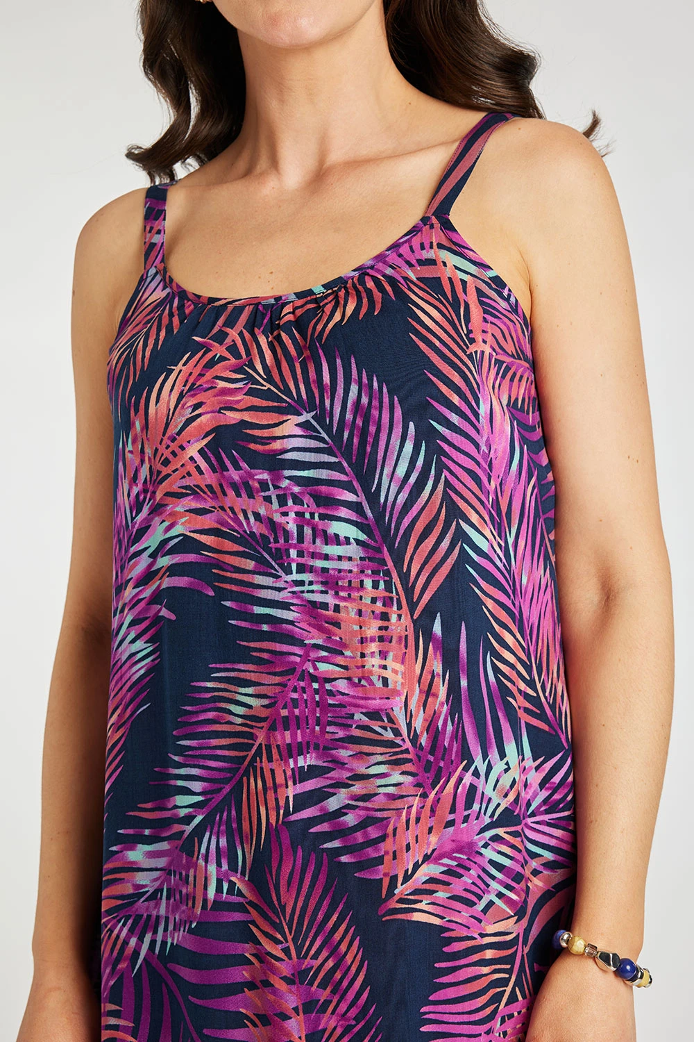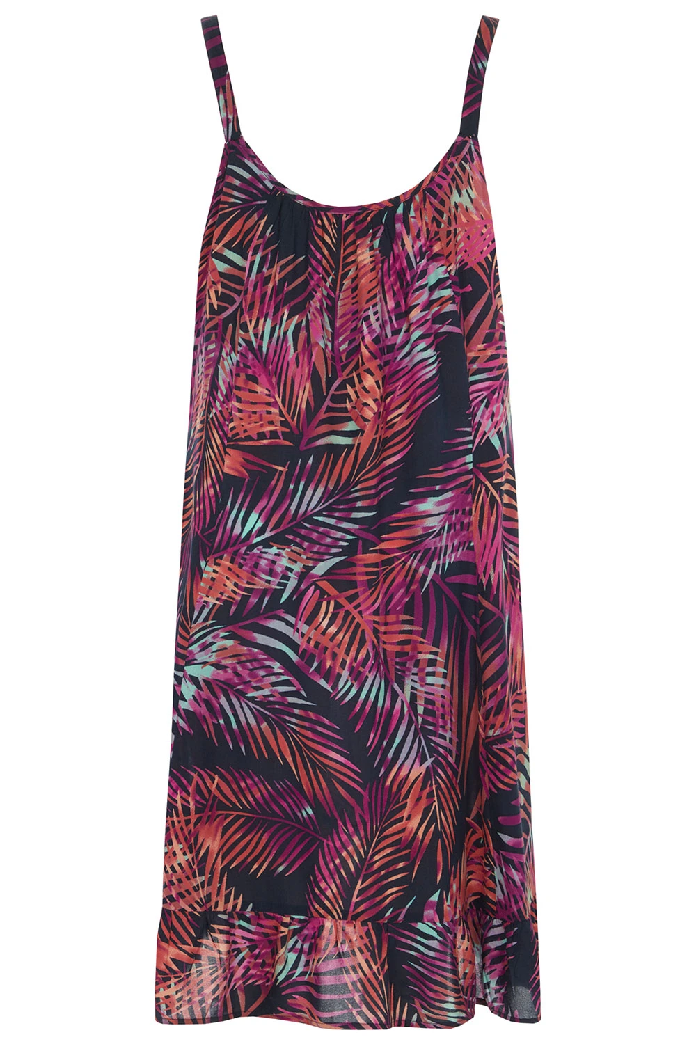 Keep cool and look fresh in this lightweight sundress. With its floaty shape, it is easy to pull on over your swimsuit ready for the beach or pool. The design features an all-over palm print on a navy base, giving it just a touch of summer pattern.