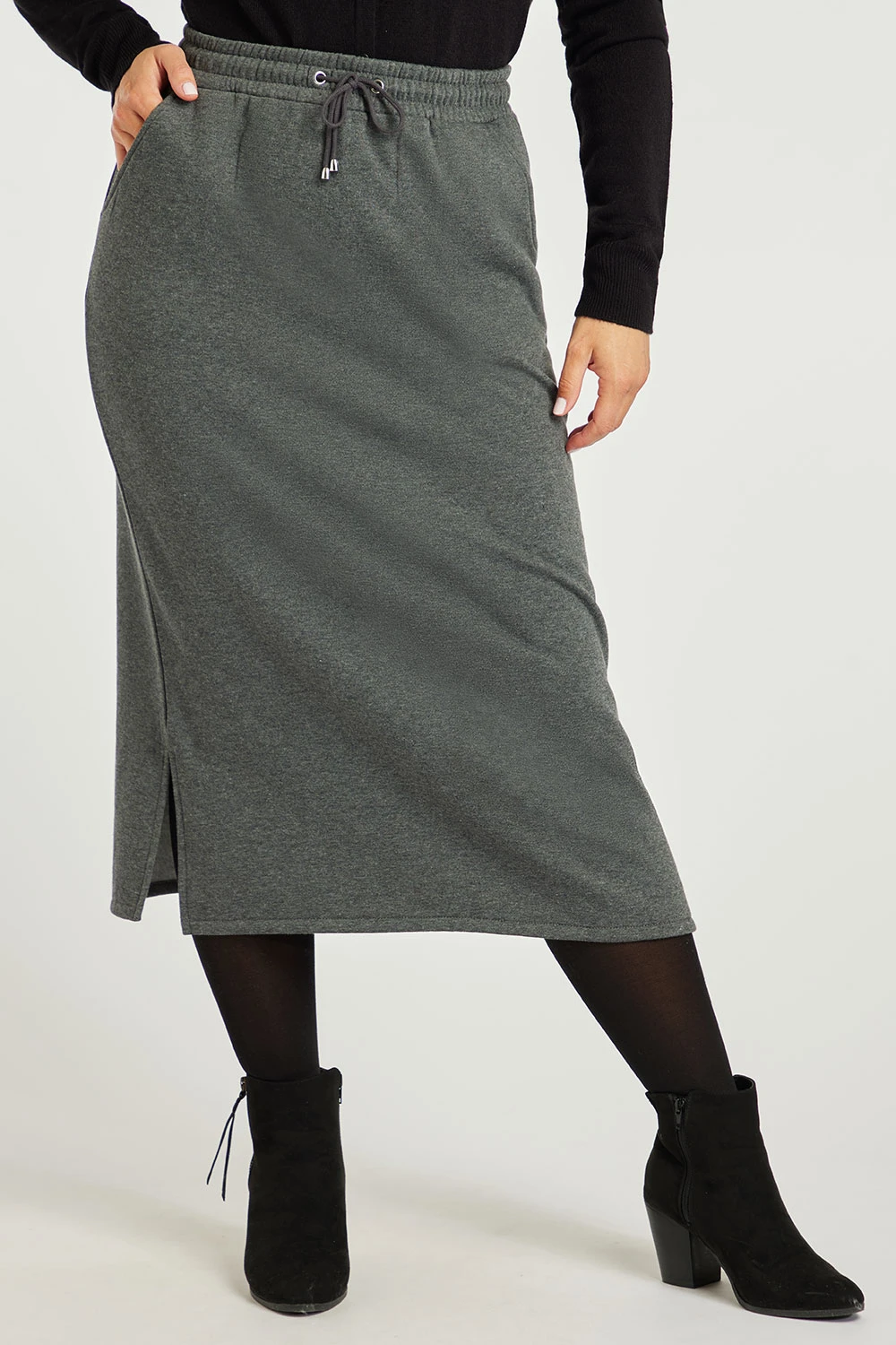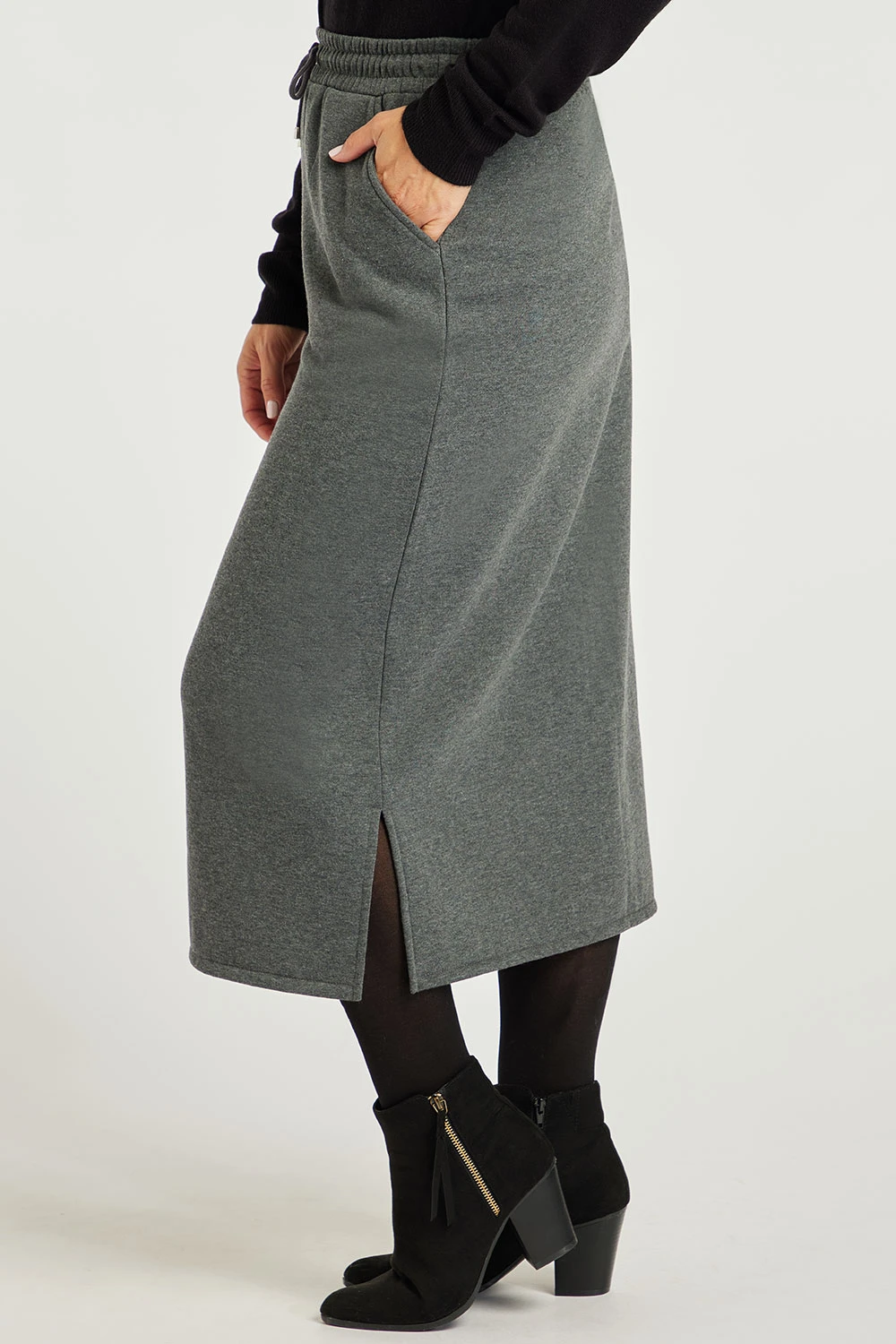 Add this brushback skirt to your wardrobe this winter. The brushed material makes the skirt warm and cosy. Complete with pockets on each side and split sides adds a feminine touch. It has a drawstring waist for comfort and styling. Pair with your favourite jumper for a perfect winter look.