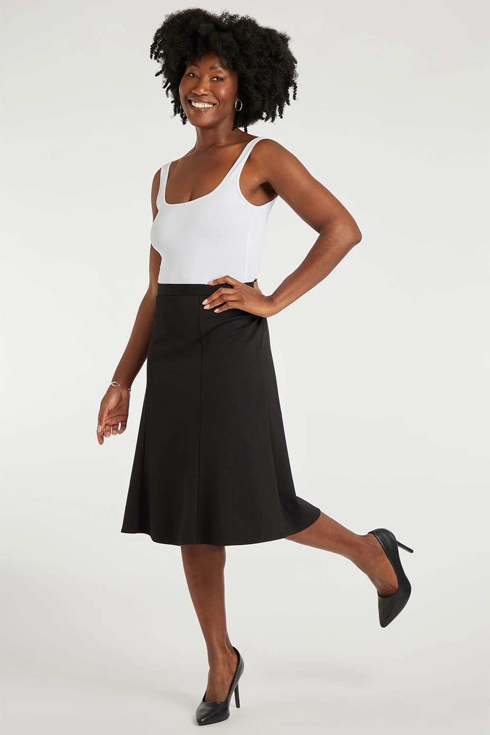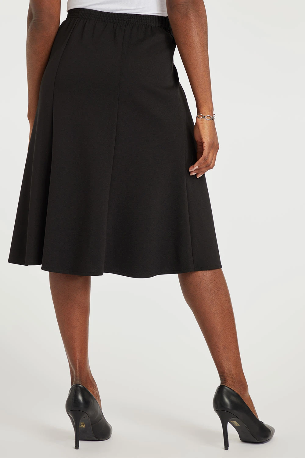 Update your wardrobe essentials with this Ponte flippy skirt. A versatile skirt with an elasticated waistband that provides great comfort and ease of wear. The panel detailing on the skirt gives a flattering finish, making it ideal to style with a blouse or t-shirt for an all-day smart look.