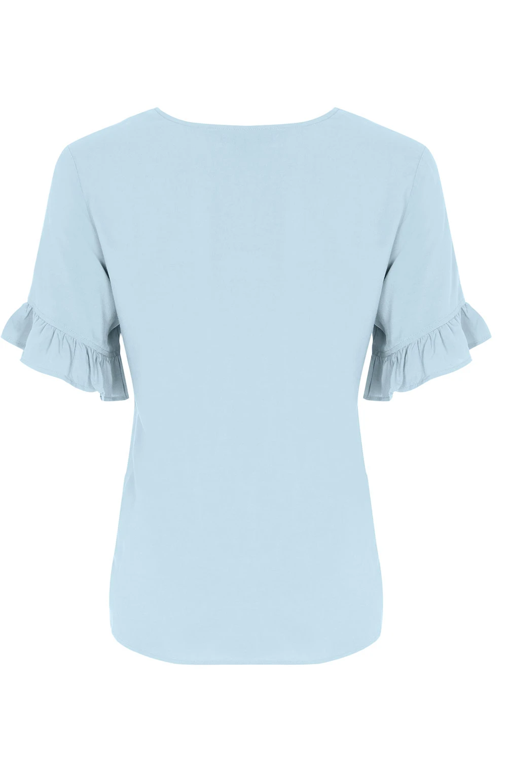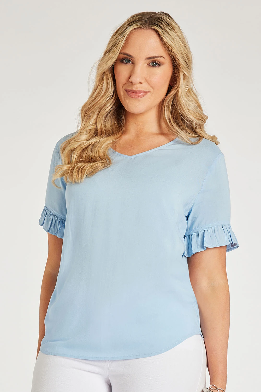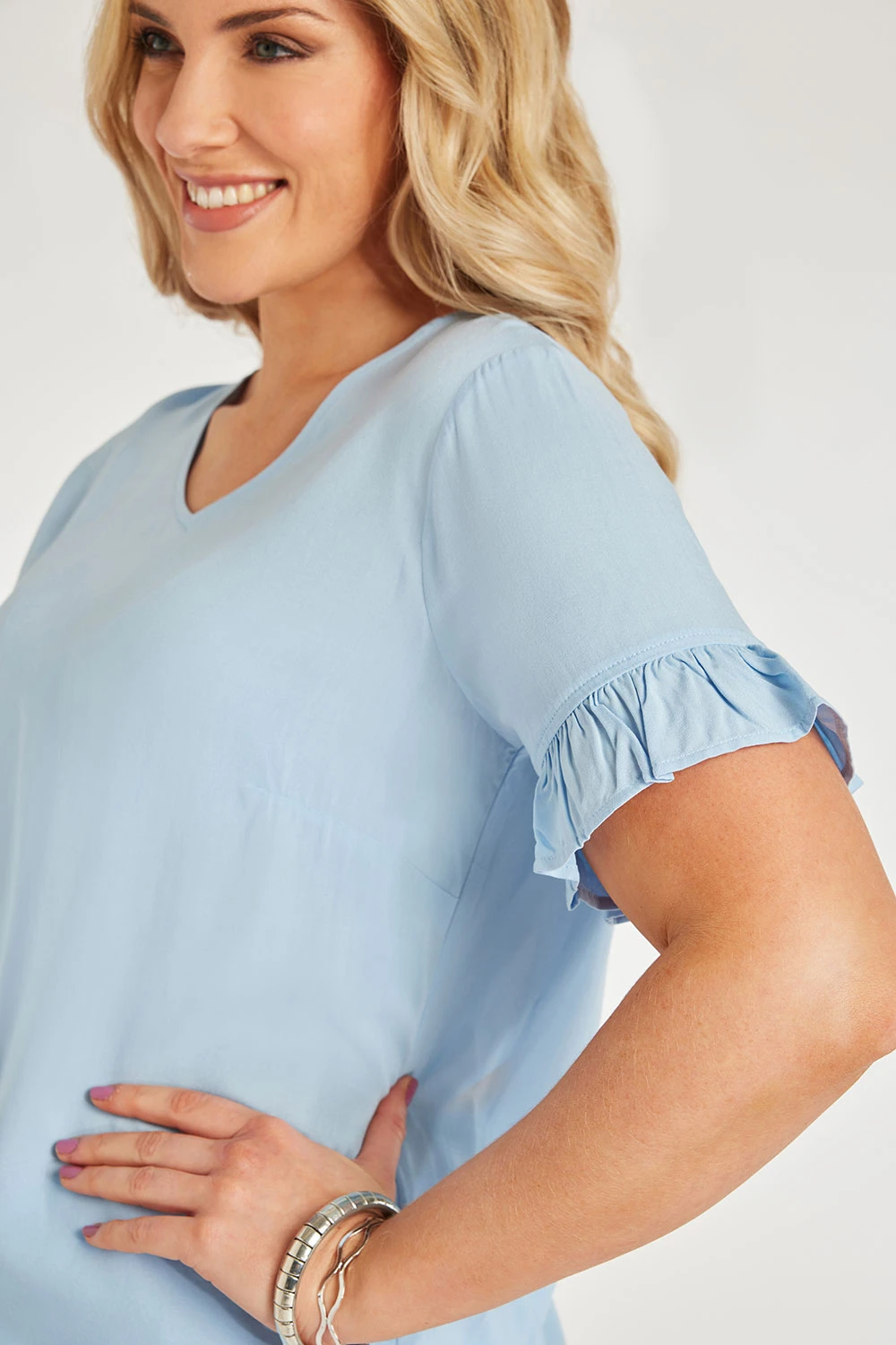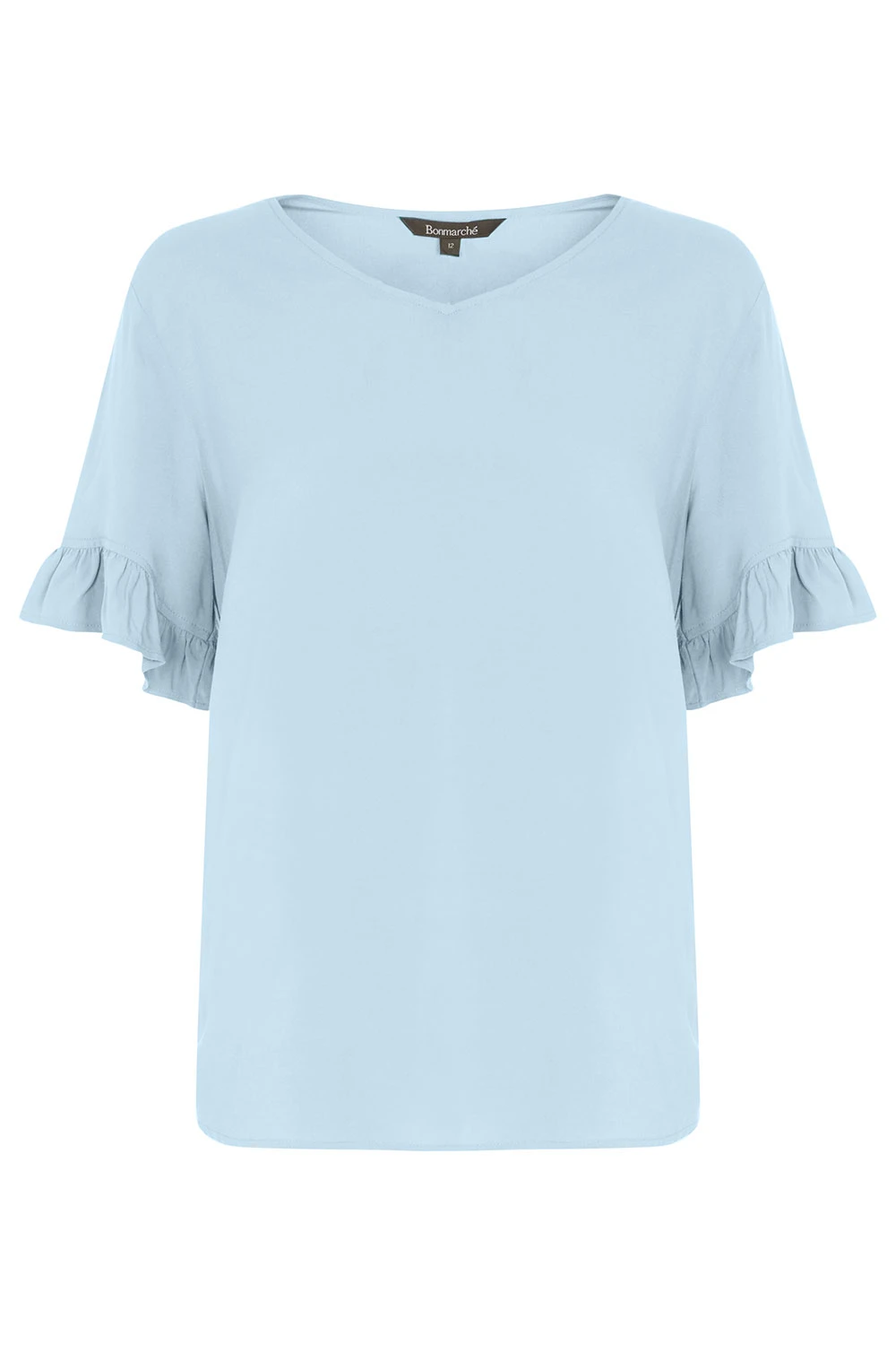 This beautifully designed v-neck top is a must have for your collection this season. It is Included in Lorraine Kelly’s collection, Lorraine Loves. The v-neckline paired with short frill sleeves makes it comfortable and stylish for when the weather is warmer. Wear with white jeans and sandals for a great Summer look.