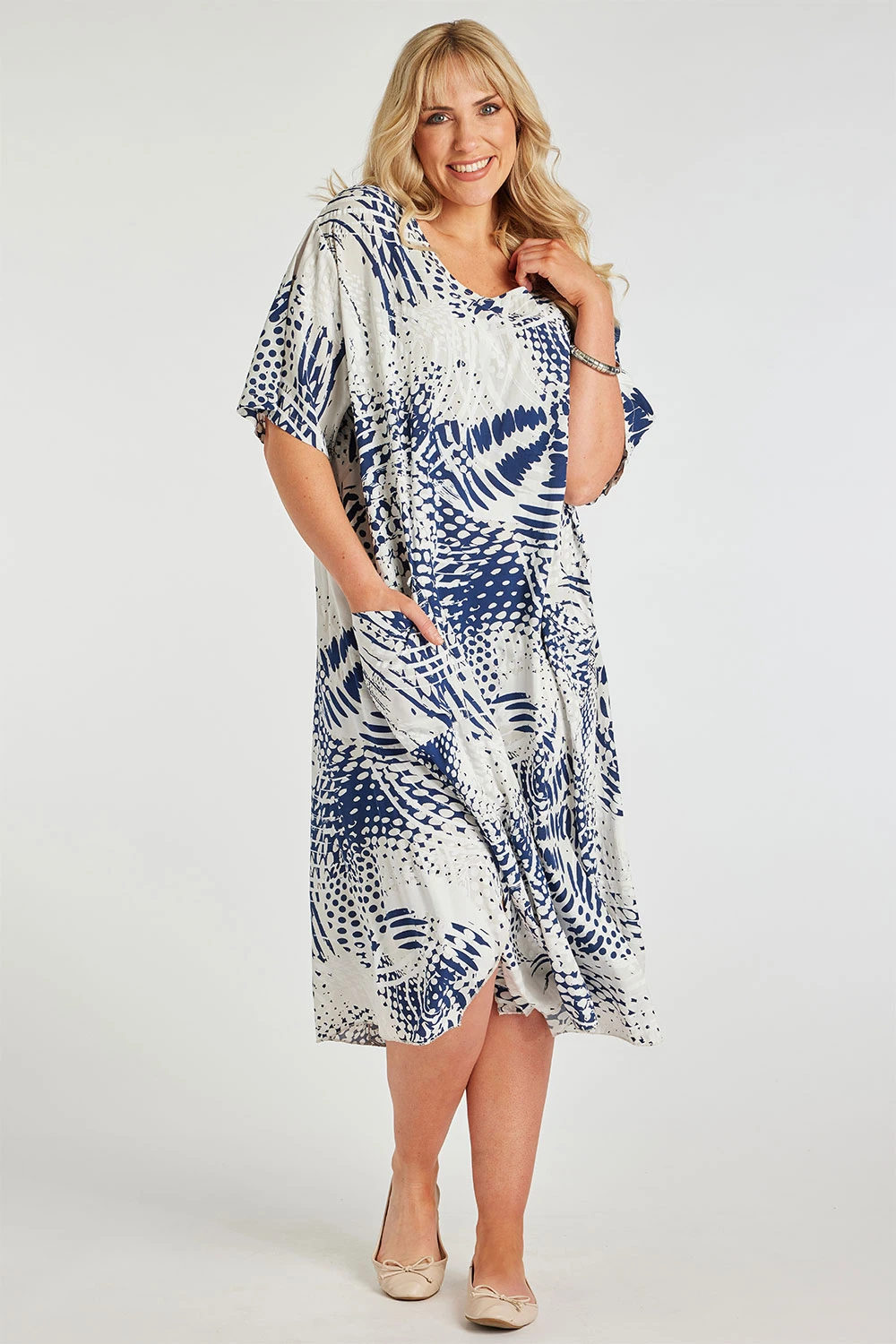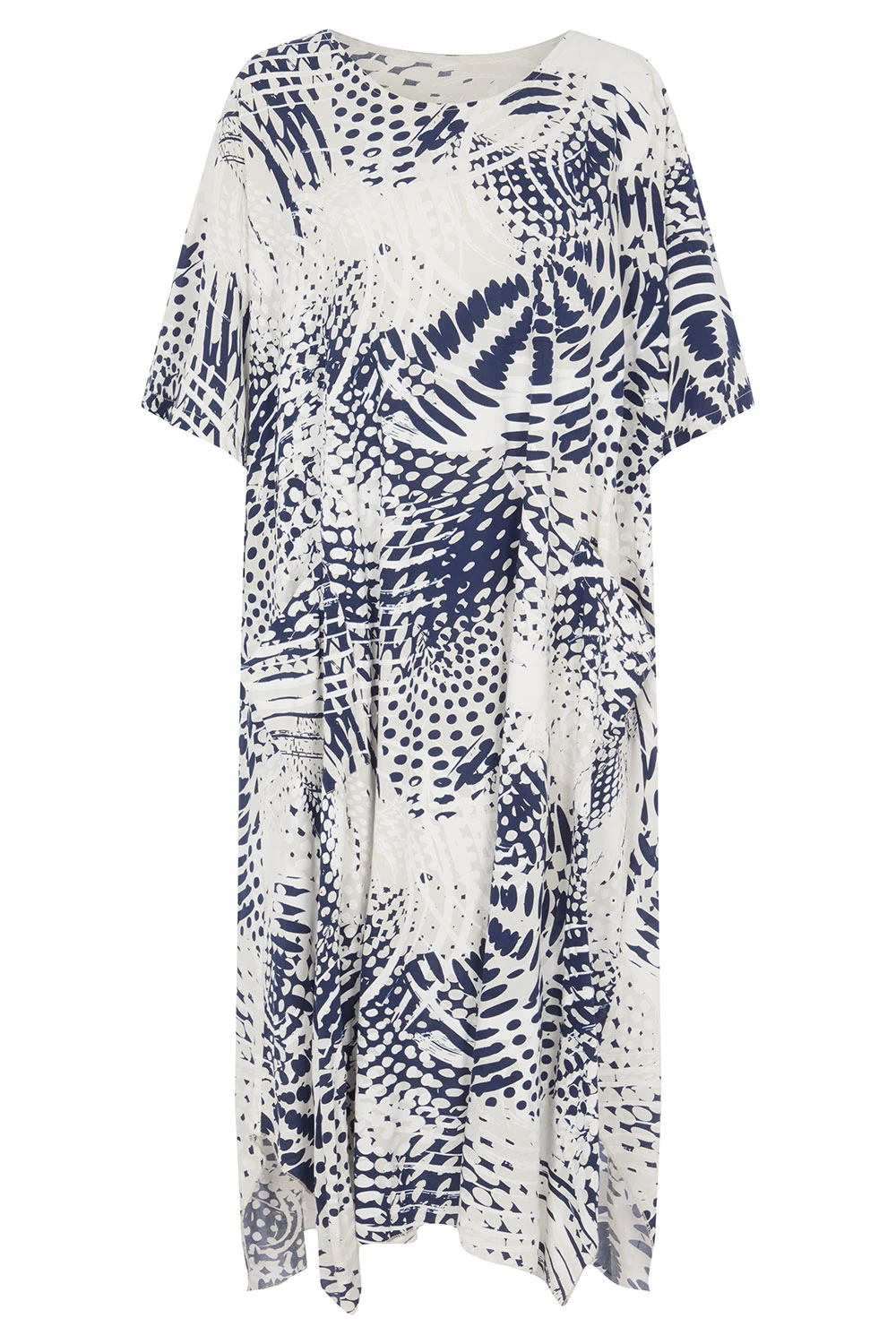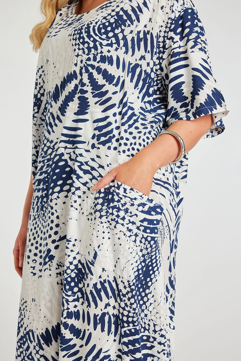 Be comfortable and stylish this Spring/ Summer with this abstract spot design dress. The short sleeves and round neckline give it a classic style while the abstract print gives it a great twist. Wear with heeled boots and a black clutch for a great smart casual look.
