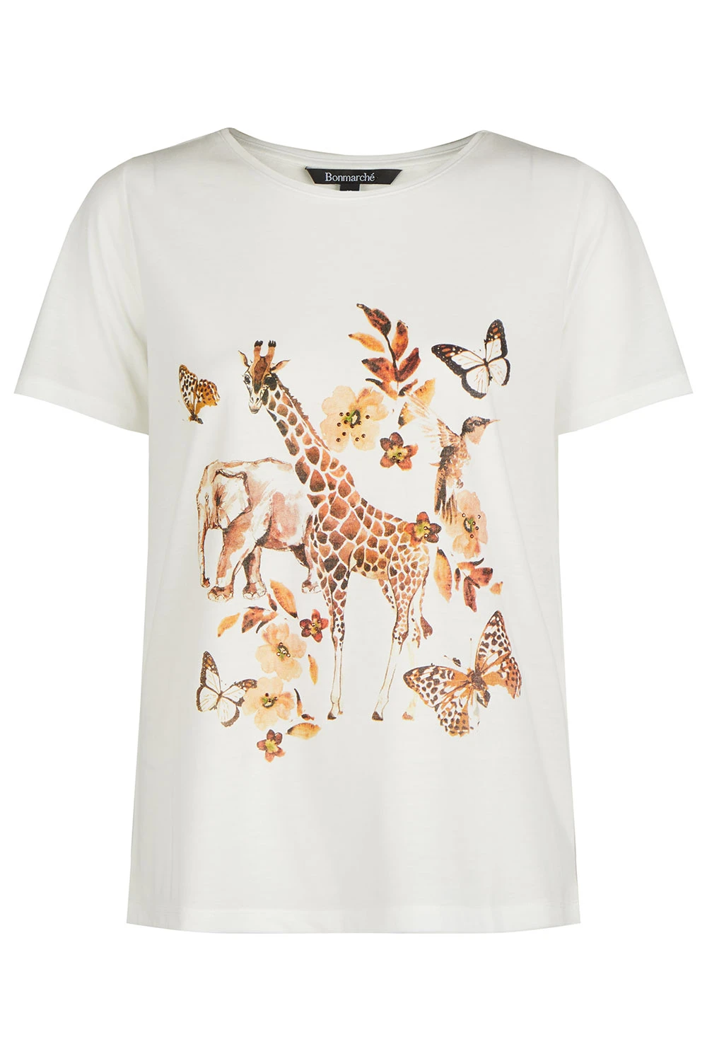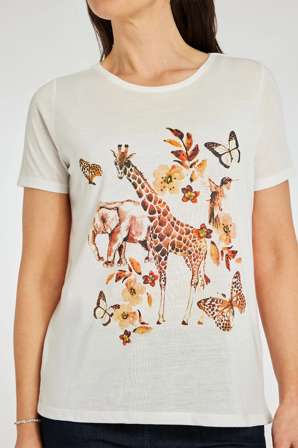 Be comfortable and casual with this animal and floral design t-shirt. Complete with a round neckline and short sleeves, perfect for styling. Wear with jeans or linen trousers and trainers for a casual weekend look.