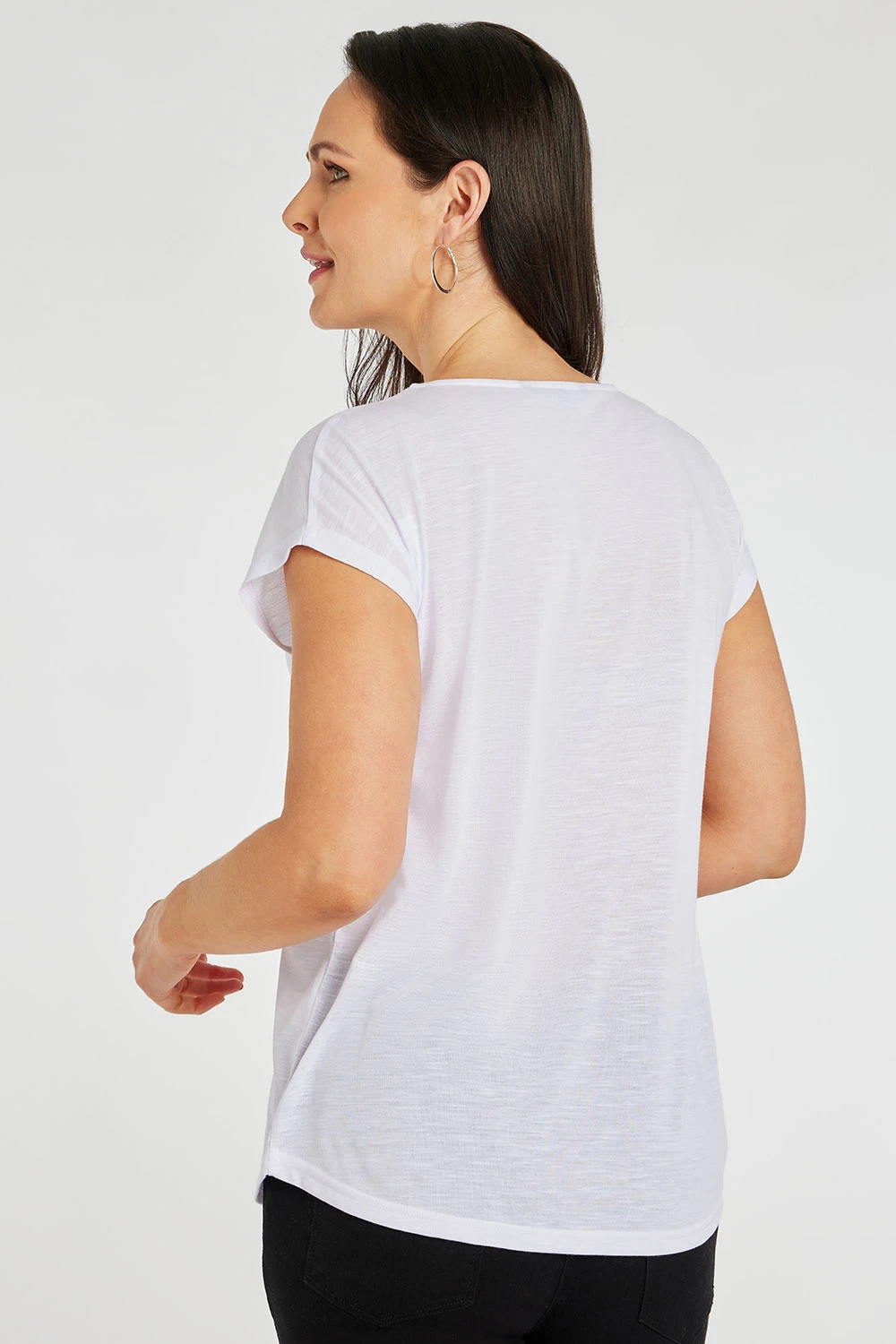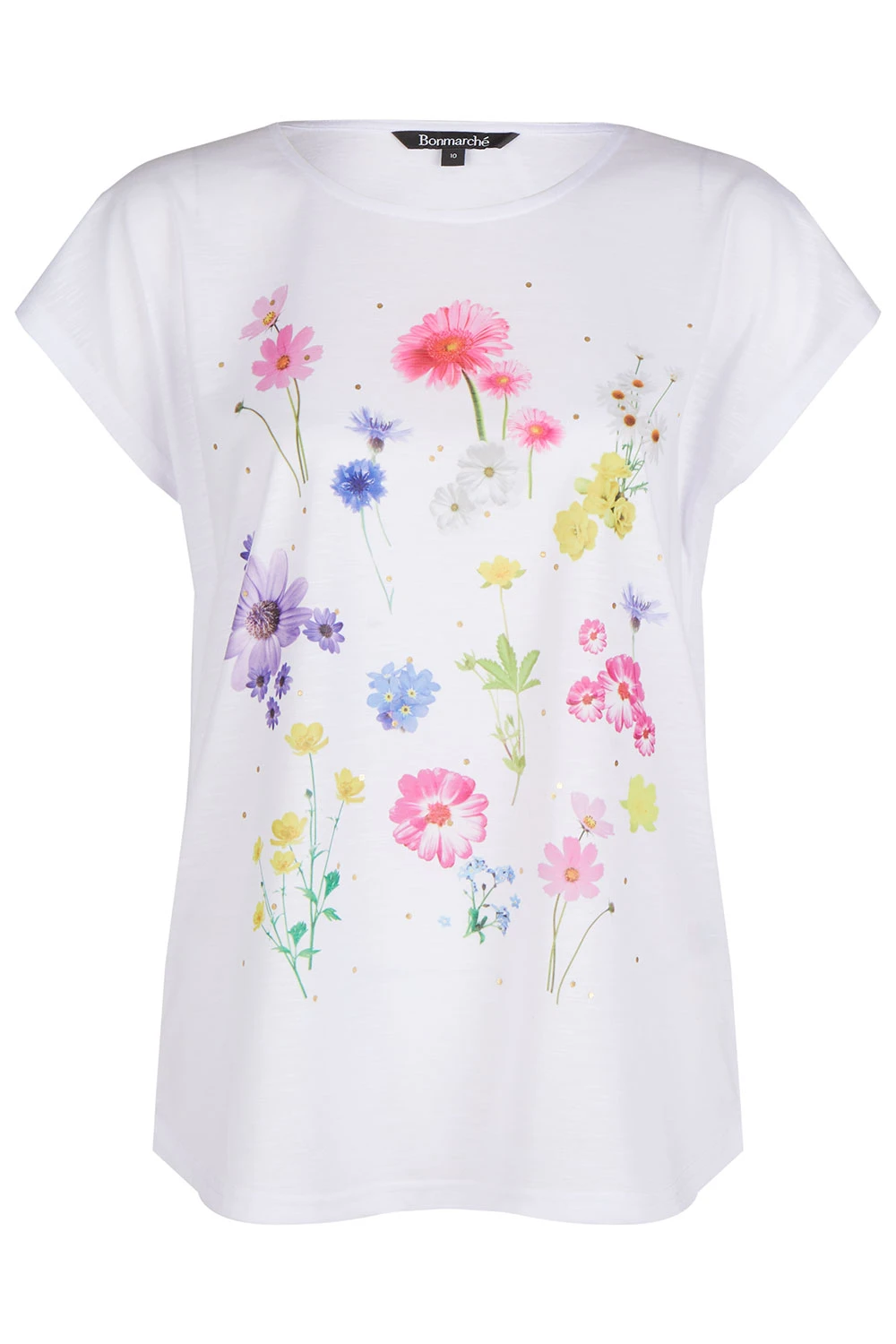 This t-shirt is a great twist on a classic style, complete with short sleeves and a beautifully designed botanical floral design making this t-shirt a must have. Wear with white linen trousers and a light jacket for a great casual look.