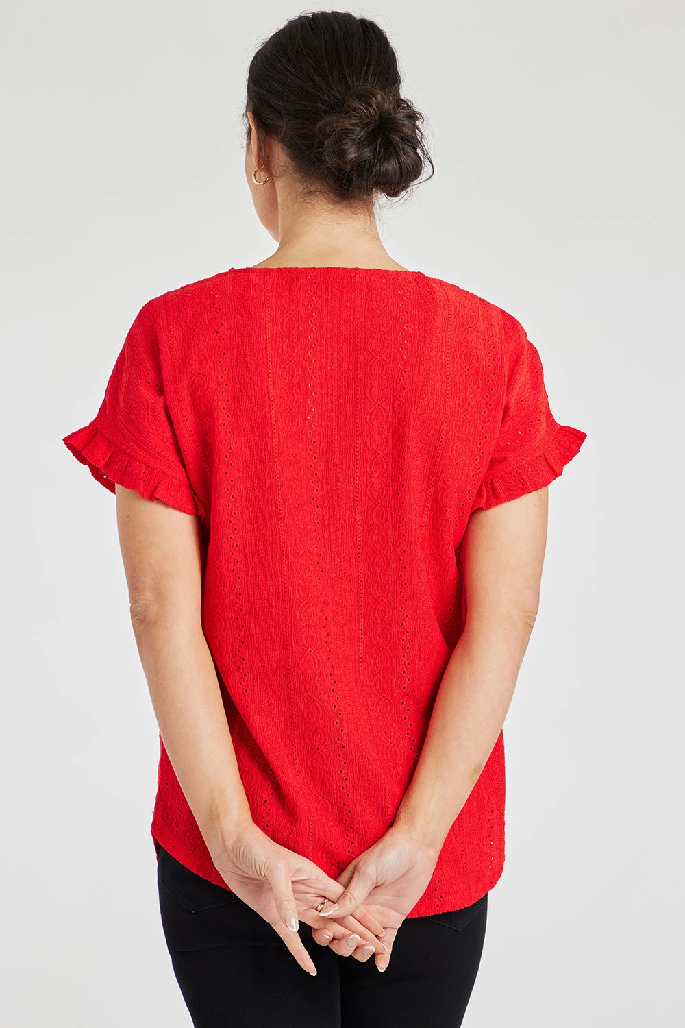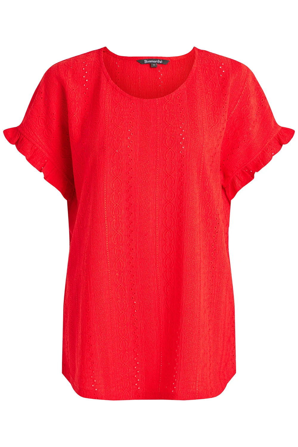 Add this broderie t-shirt to your collection this Summer. A great item handpicked by Lorraine Kelly. Complete with frill detail sleeves and broderie material for comfort and style. Pair with linen trousers and sandals for a great Summer outfit.