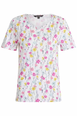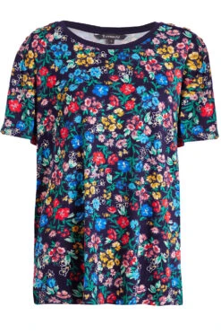 Add this short sleeve capri design top to your collection this Spring. The placement print and colour scheme make it perfect for a casual outfit at home. Pair with shorts and sandals for a great Summer look.