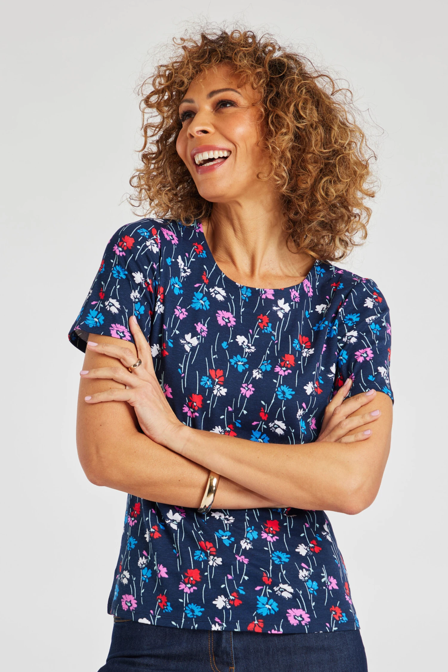 This lovely 3/4 sleeve t-shirt is sure to make a great addition to your tops collection. With short sleeves, an all-over ditsy flower print, and a flattering scoop neckline, this t-shirt is comfortable yet stylish. Team with your favourite jeans, for an effortless everyday outfit.