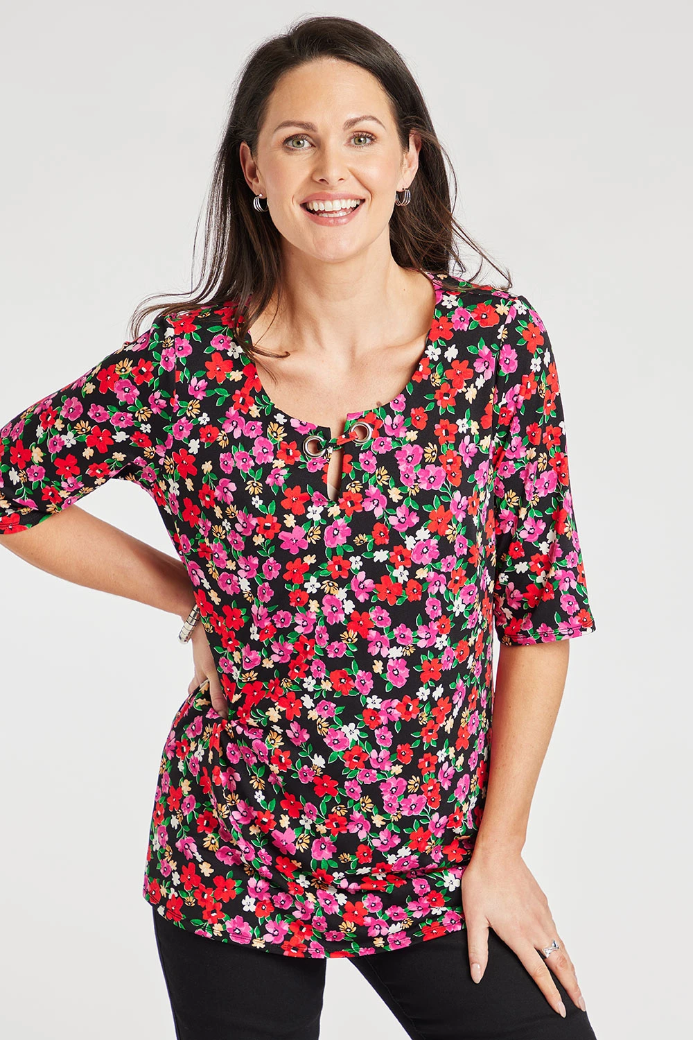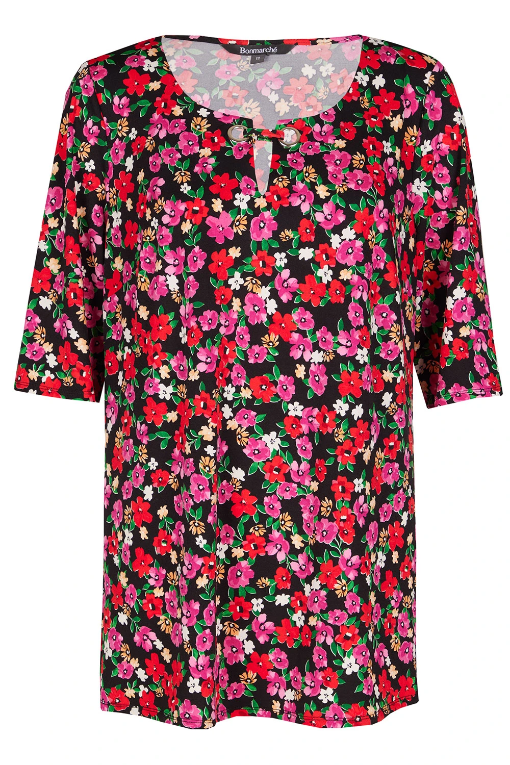 Get ready for Spring with this ditsy print tunic. The floral design and eyelet detail adds a feminine touch. Keeping any look comfortable and stylish with the floral fabric. Pair with jeans and boots for a smart casual look.