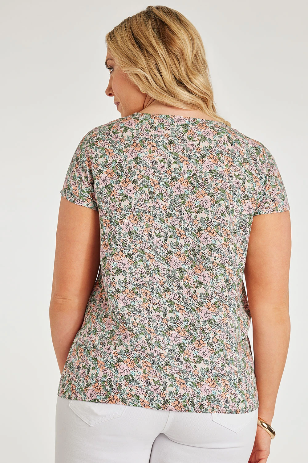 This stylish ditsy print shell top will make a great addition to your new season collection. An all-over print top with short sleeves is perfect for any occasion. For a smart all day look style with straight leg trousers.