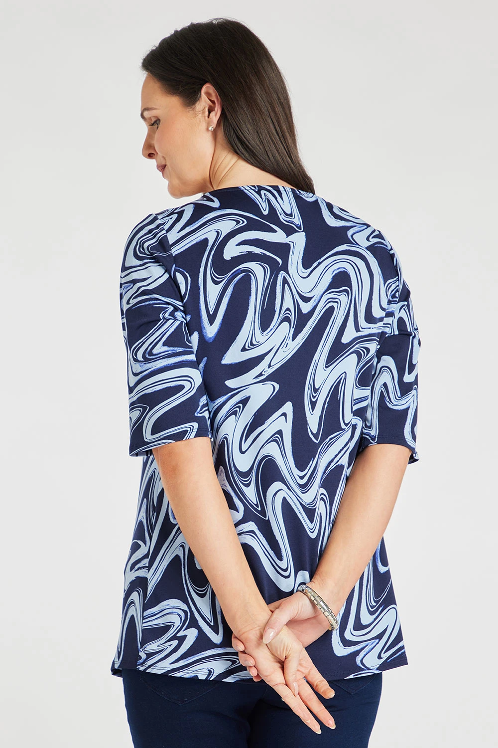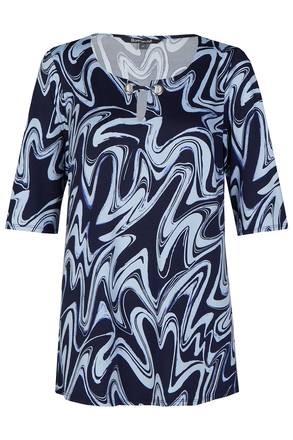 This beautifully designed tunic is a must-have this Summer. Complete with a stand out marble design and eyelet detail on the neckline, make this a great piece for styling. Wear with shorts and sandals for a great Summer look.